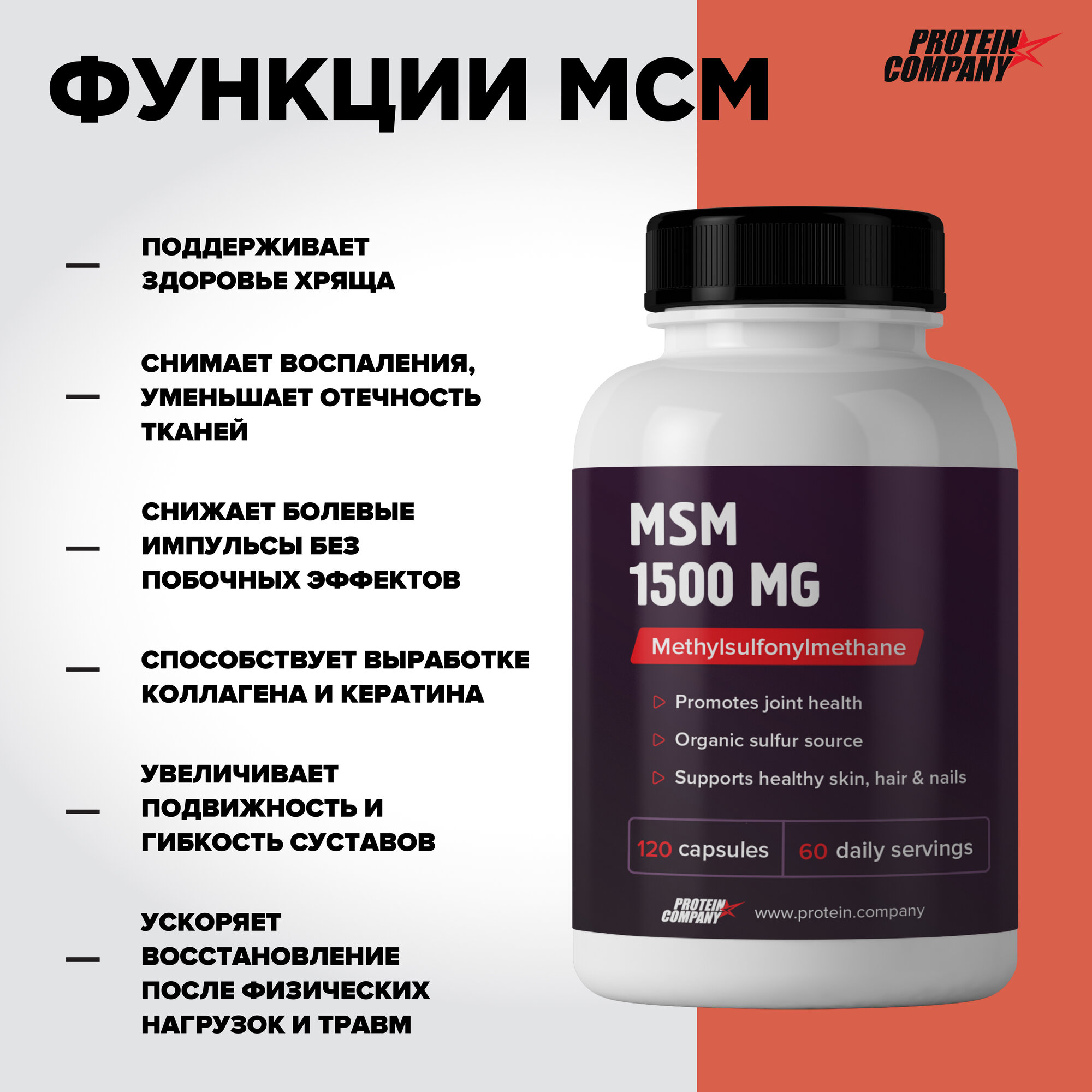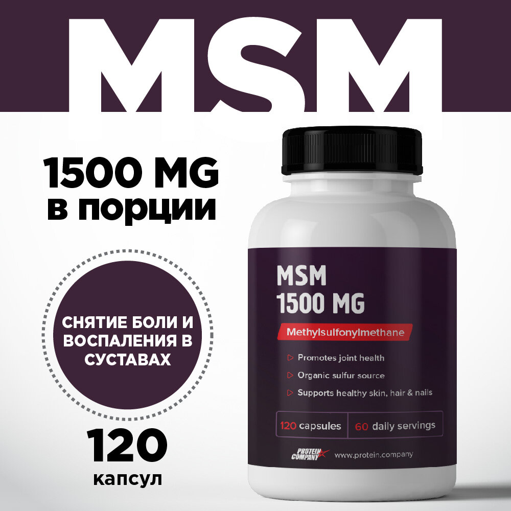 Купить Метилсульфонилметан 1500 мг PROTEIN.COMPANY. МСМ, для суставов, связок, хрящей, тканей, 120 капсул