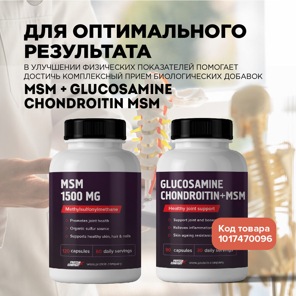 Хондропротектор PROTEIN.COMPANY - Глюкозамин хондроитин МSM для суставов, связок, хрящей. МСМ, комплекс. Oбезболивающее, противовоспалительное. Метилсульфонилметан. 90 капсул