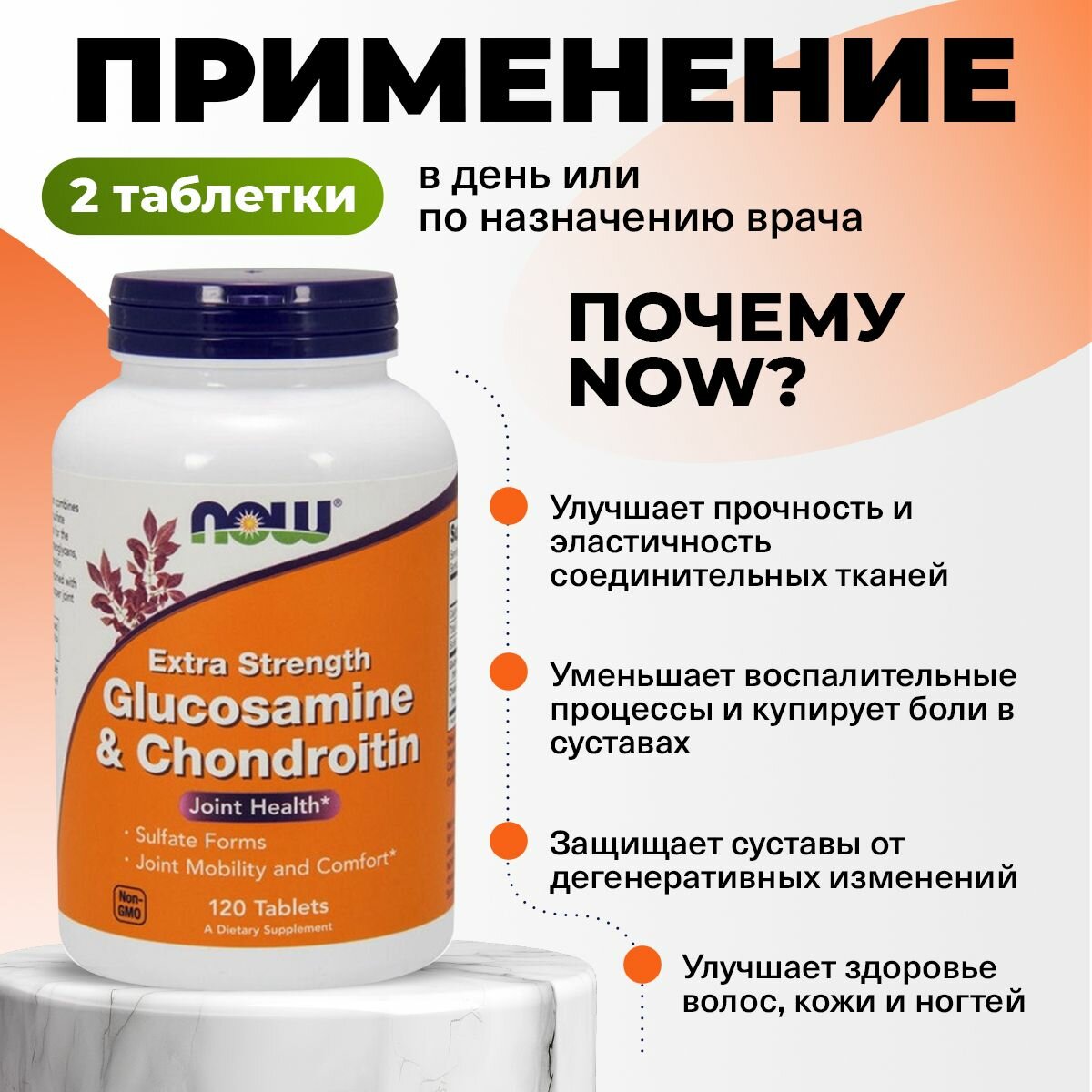 Препарат для укрепления связок и суставов NOW Extra Strength Glucosamine & Chondroitin, 120 шт.