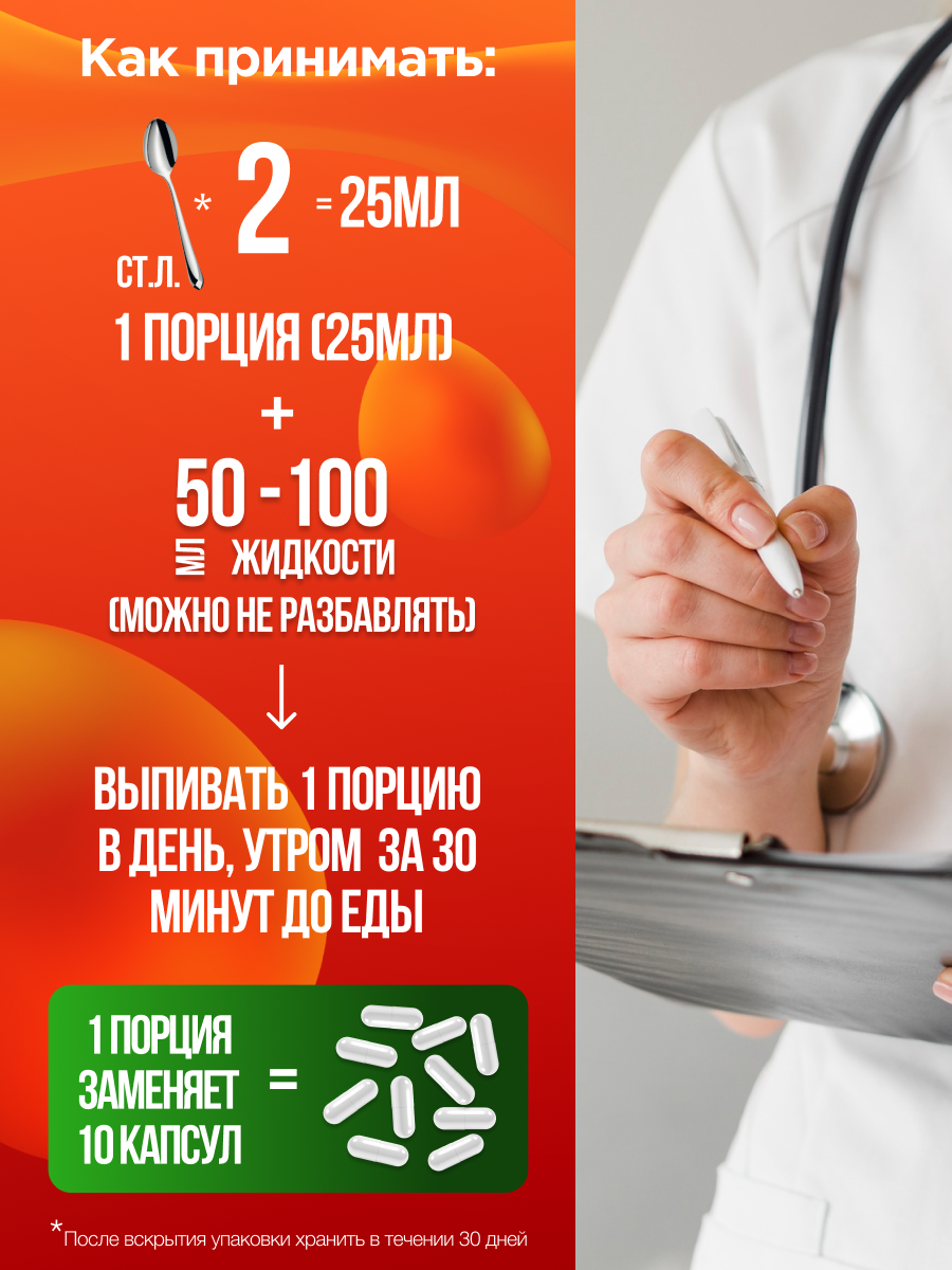 Коллаген 12500 мг с аминокислотами, витаминами для суставов и связок, Сollagen для лица кожи и волос, концентрат, вкус смородина апельсин, 1л