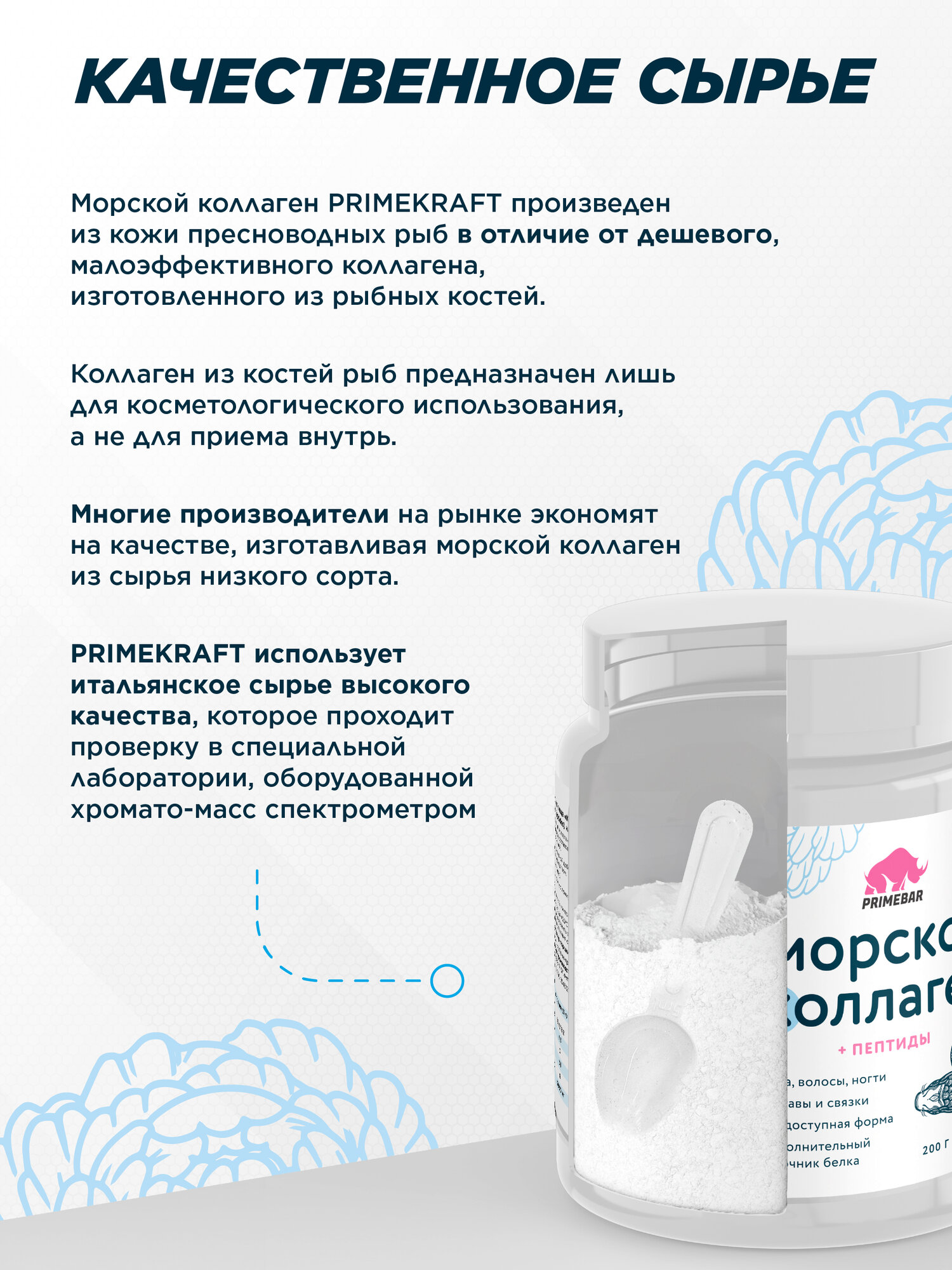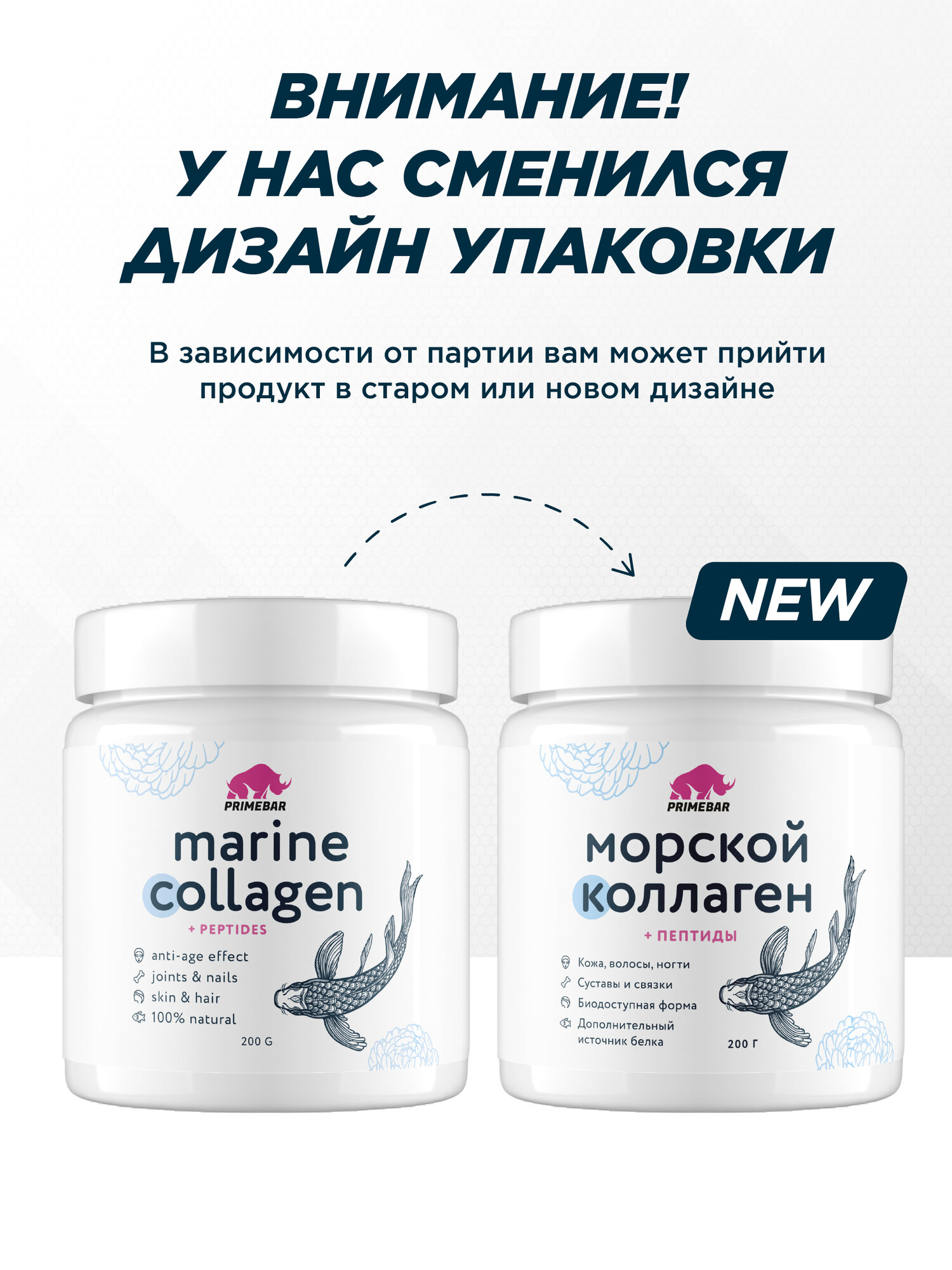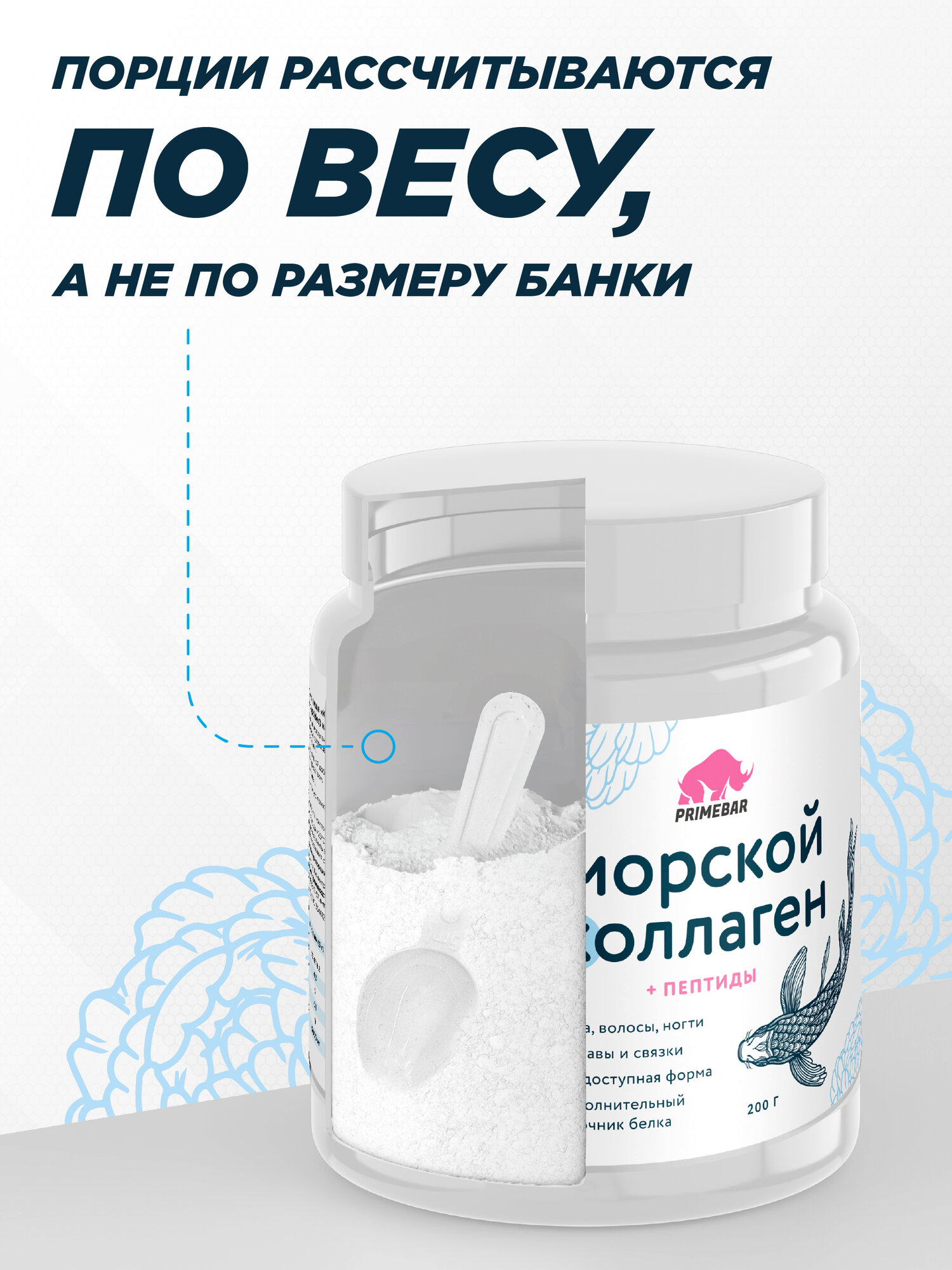Коллаген порошок PRIMEBAR Морской / Рыбный (Hydrolyzed marine collagen peptides) Натуральный, без добавок, 200 г