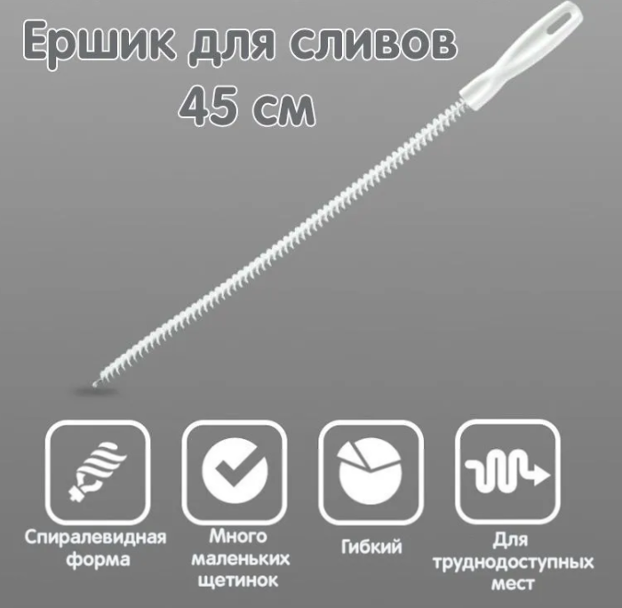Ниже Вы можете прочитать отзывы на Ершик для чистки труб и раковины, гибкий, 45 см, металлический, ознакомится с подробными характеристиками, посмотреть интересные обзоры и фотографии на Ершик для чистки труб и раковины, гибкий, 45 см, металлический.