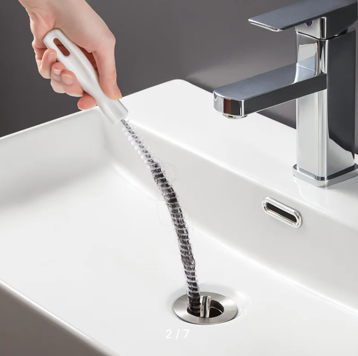 Щетка для чистки труб и раковин, длина троса 60 см, белого цвета