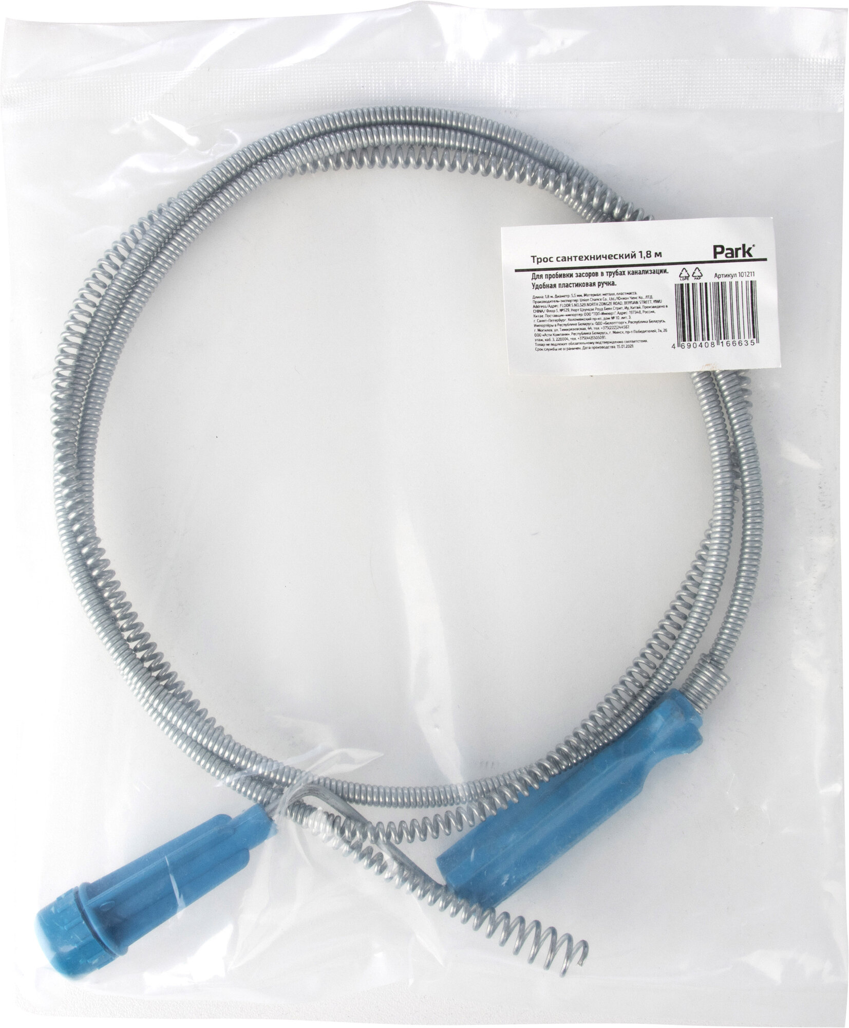 Трос сантехнический для прочистки канализационных труб Park, длина: 1.75 м интересное: