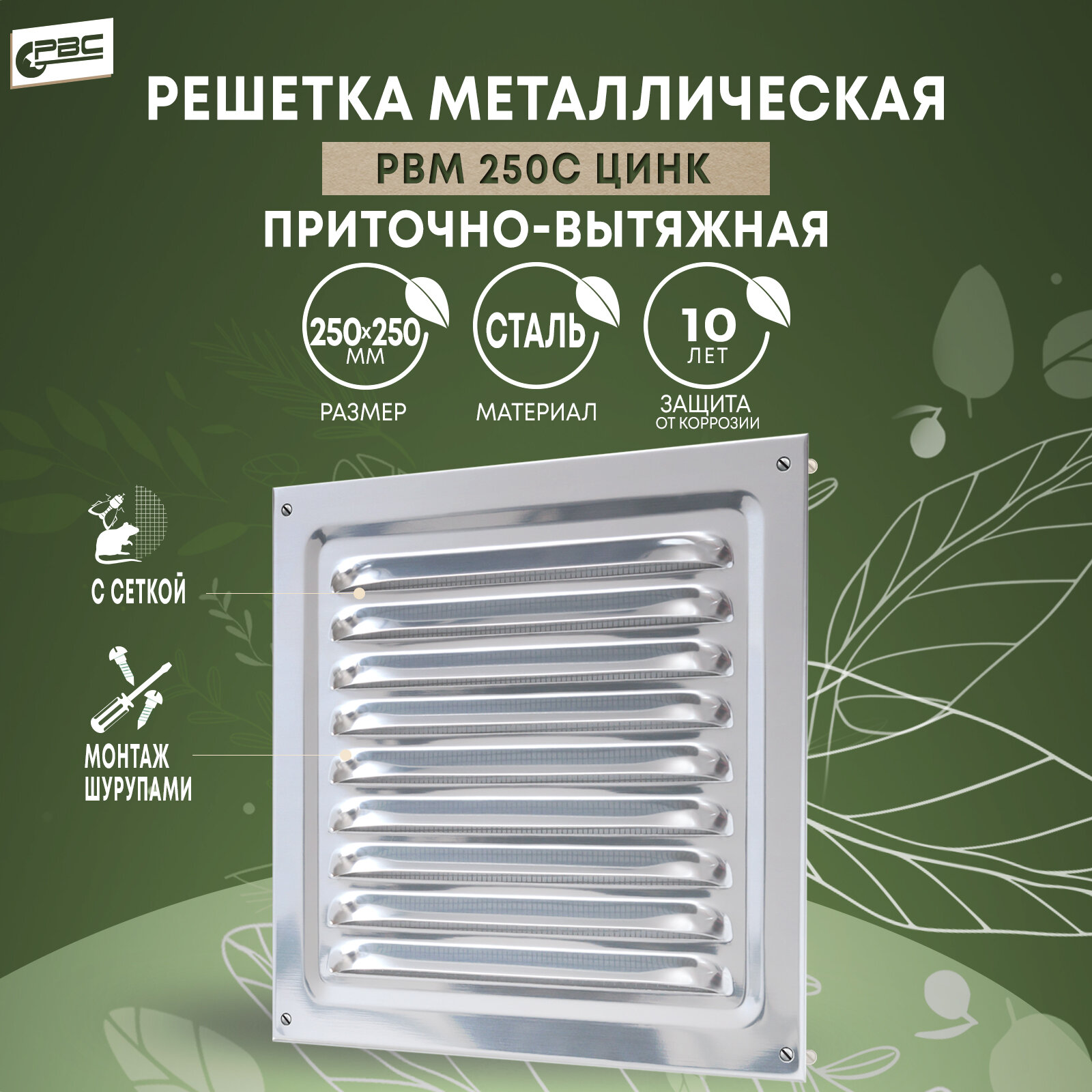 Решетка вентиляционная с сеткой от насекомых, РВМ 25 х 25 см, цвет "цинк" интересное: