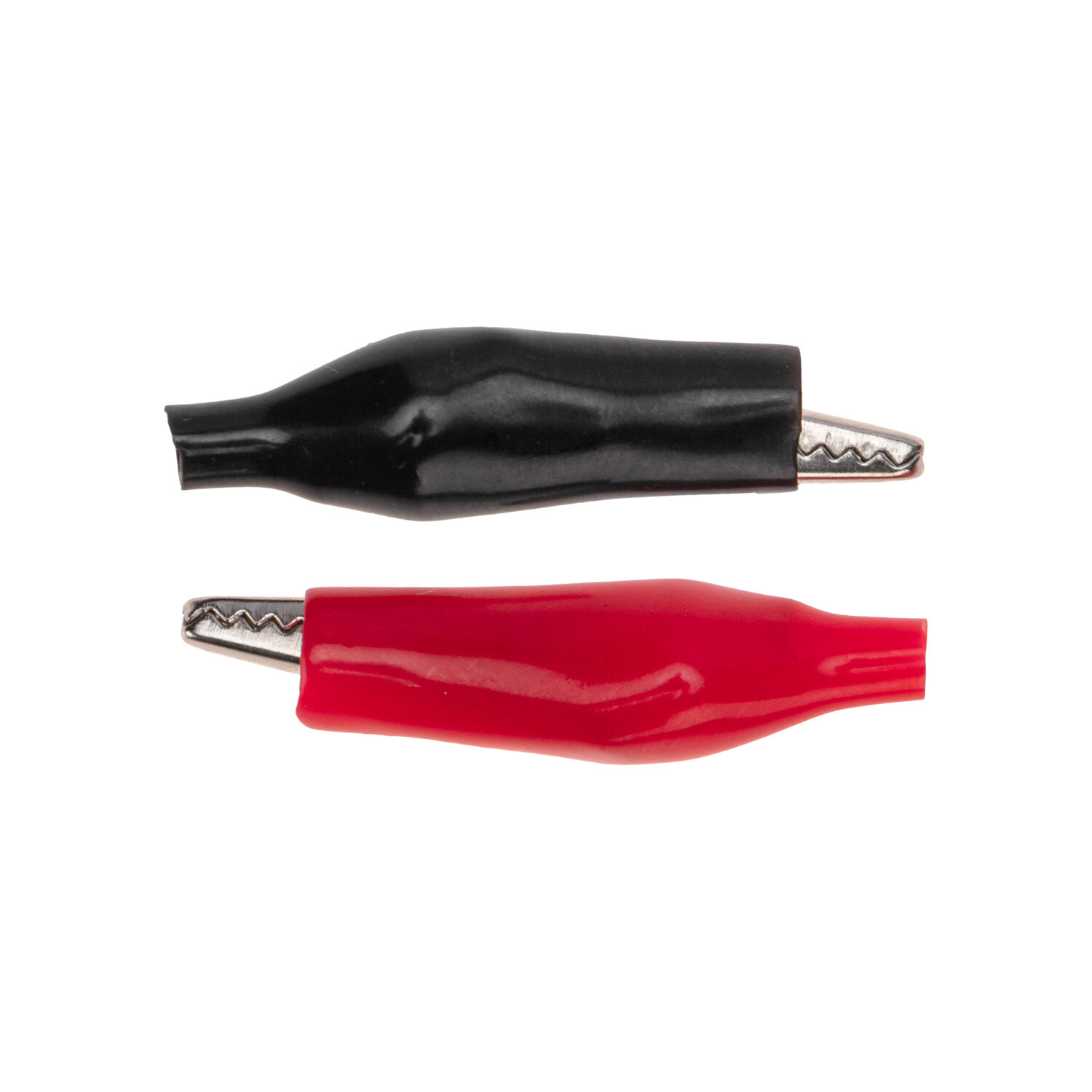 Зажим Крокодил REXANT 15A/53 мм, 2 штуки, цвет черный/красный, изоляция ПВХ