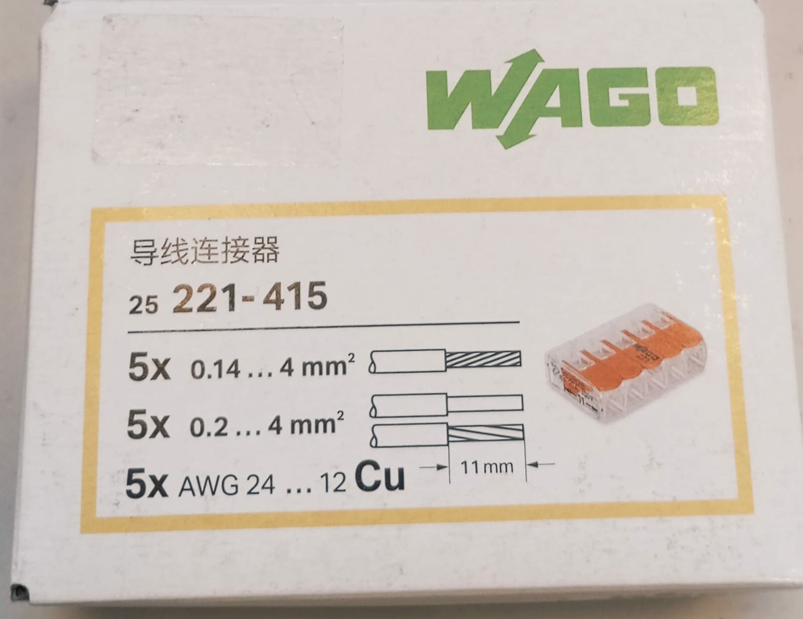 Клеммы Wago 221-415 в блистерной упаковке 12шт
