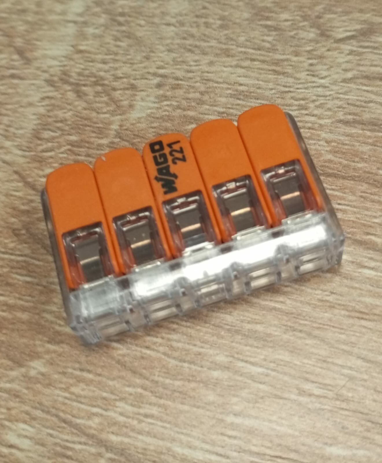 СохранитьКлеммы WAGO, 5-ти проводные (221-415) Оригинал, прозрачные/оранжевые , Цена указана за 1 упаковку 25 шт.(25 клемм) интересное: