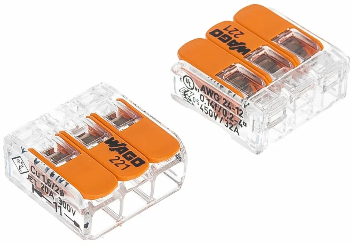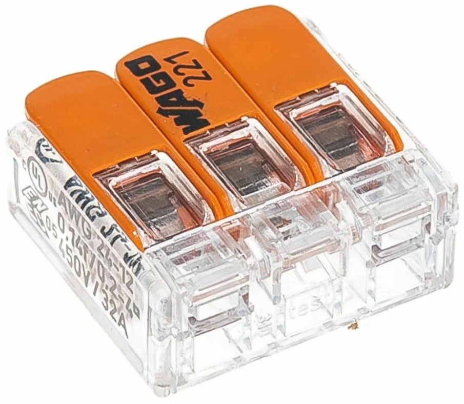 Клемма WAGO с рычагами 3-проводная 221-413, 4 шт.