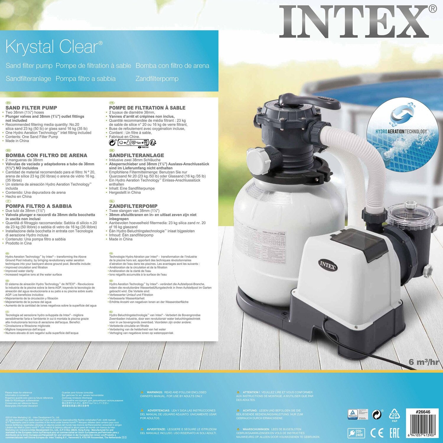Ниже Вы можете прочитать отзывы на Песочный фильтр-насос для бассейна Intex 26646, производительность - 6000 л/ч (фильтрация), 7900 л/ч (циркуляция), ознакомится с подробными характеристиками, посмотреть интересные обзоры и фотографии на Песочный фильтр-насос для бассейна Intex 26646, производительность - 6000 л/ч (фильтрация), 7900 л/ч (циркуляция).