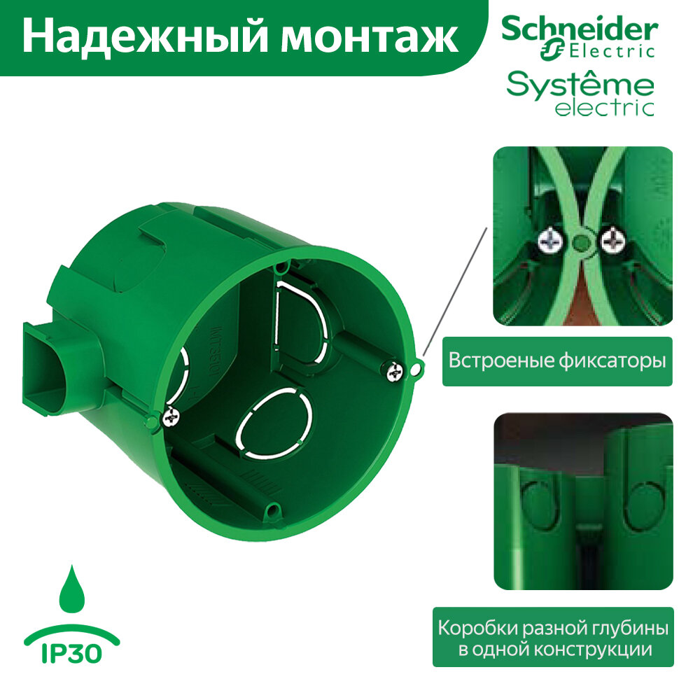 Коробка установочная Schneider Electric Multifix 65x46 круглая для кирпичных и бетонных стен IP30 зеленая (комплект из 30 шт.)