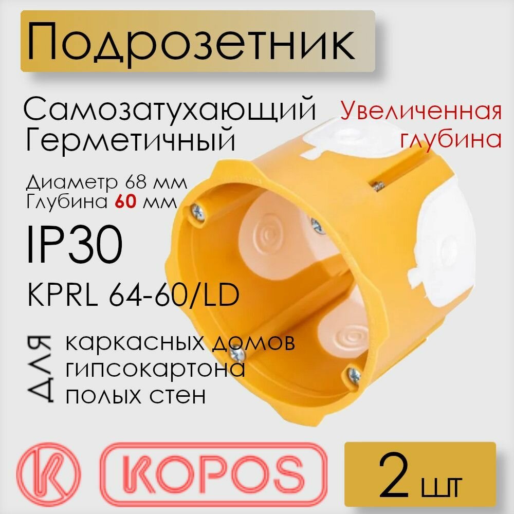 Купить Подрозетник Kopos для полых стен, 68х60 мм, увеличенной глубины, герметичный, IP30, самозатухающий ПВХ, KPRL 64-60/LD_NA (комплект 2 шт)