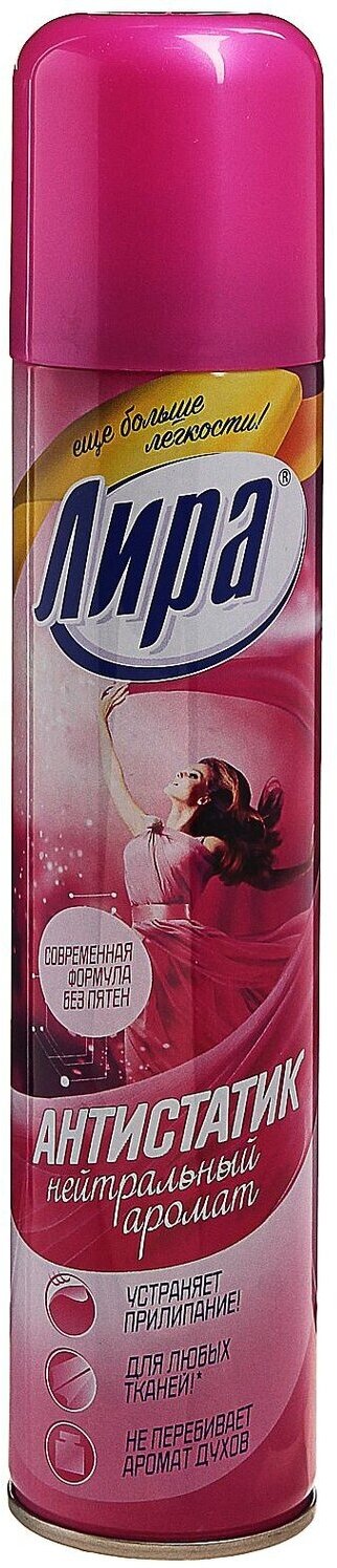 Антистатик для одежды, устраняет прилипание одежды к телу, искрение и треск, Лира с нейтральным ароматом, 200 мл