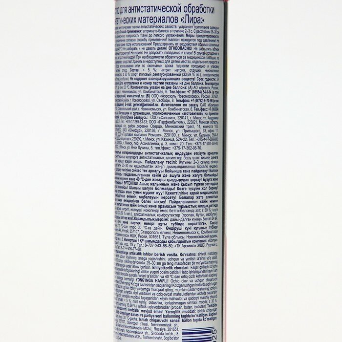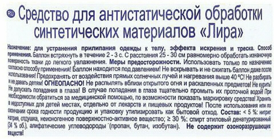 Купить Антистатик Лира, для всех типов тканей, безопасный, гипоаллергенный, 200мл