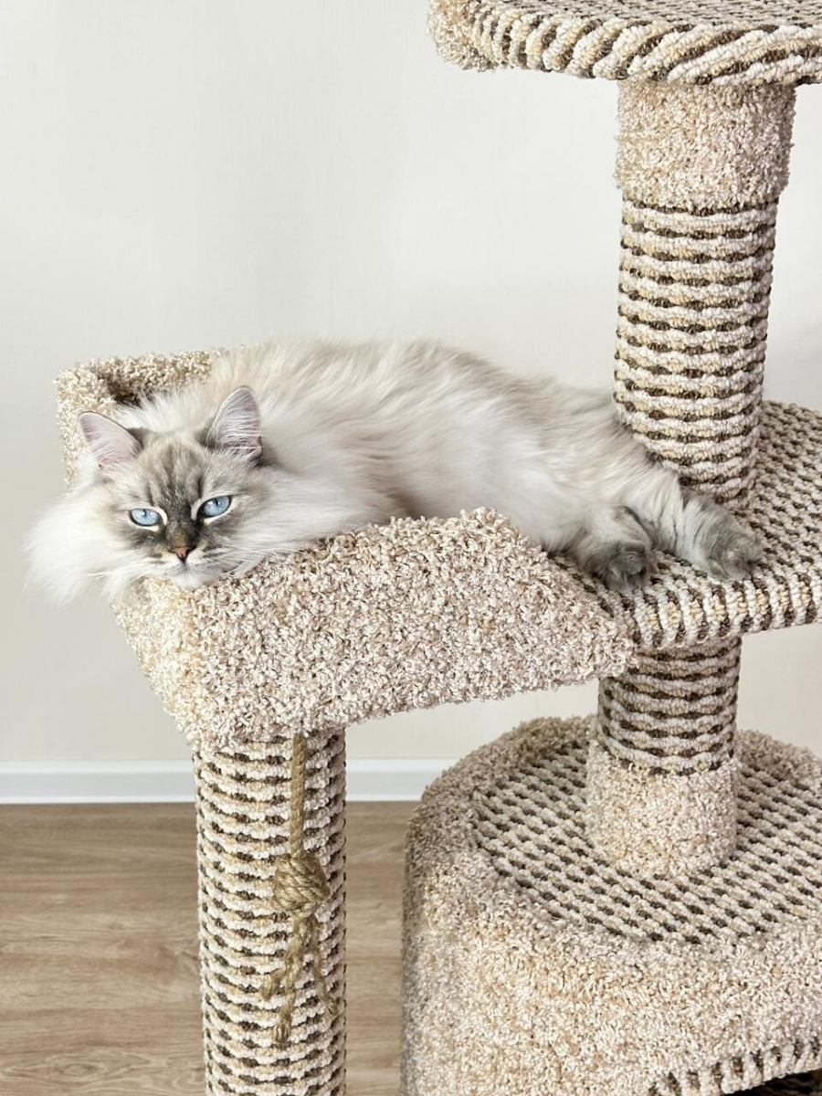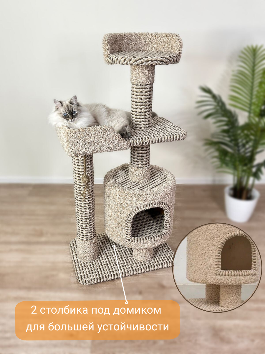 Когтеточка "Котосчастье" с домиком и лежанками из ковролина, высота 123 см интересное: