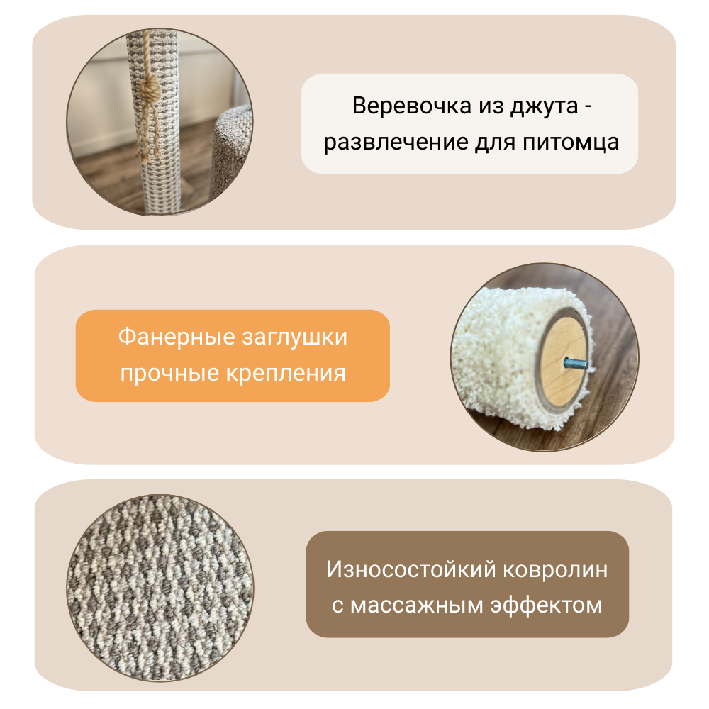 Когтеточка " Котосчастье" с домиком и лежанками из ковролина , высота 123 см интересное:
