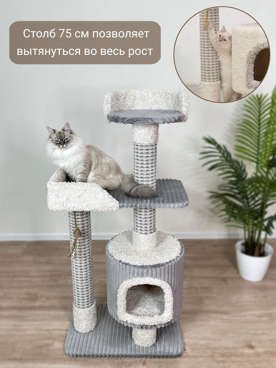Когтеточка " Котосчастье" с домиком и лежанками из ковролина , высота 122 см интересное: