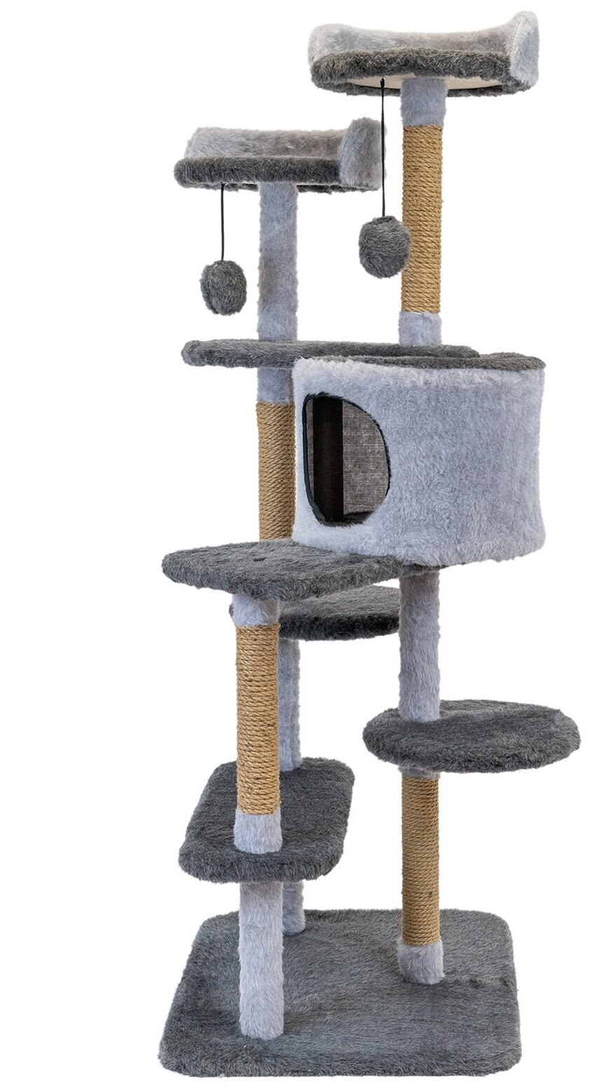 Когтеточка домик 54 х 66 х h142см "PetTails" денис разборный, 5ти уровн, (мех, джут) серый интересное: