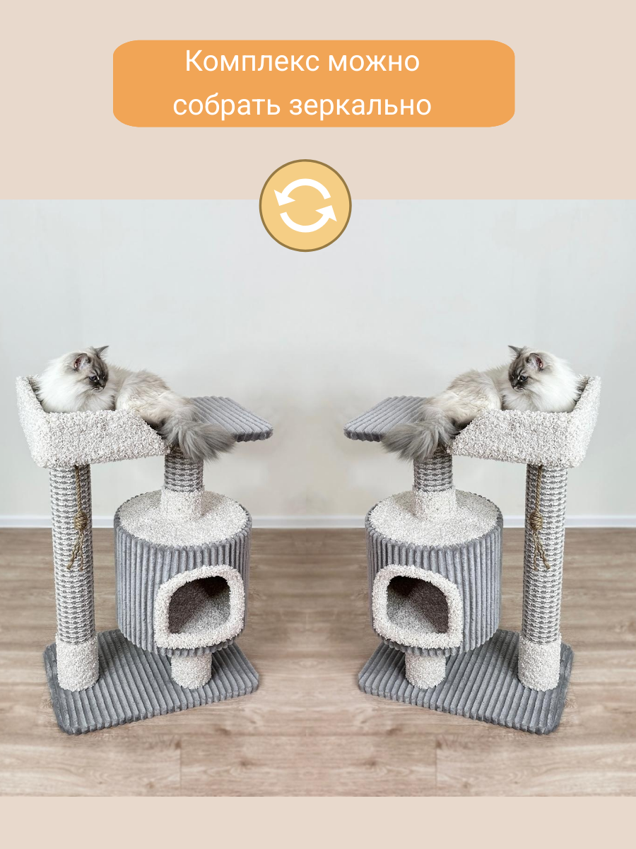 Купить Когтеточка "Котосчастье"с домиком и лежанкой из ковролина, серая с белым