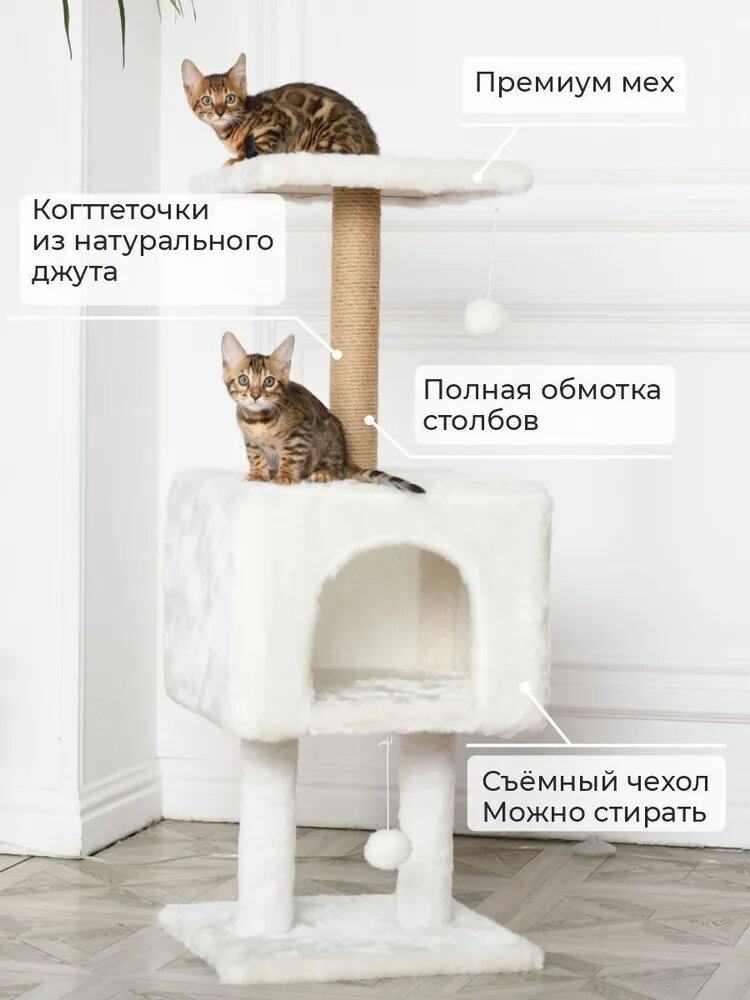 СохранитьКогтеточка для кошек с домиком "БРИСИ" на ножках, белая, 41х41х103 см интересное: