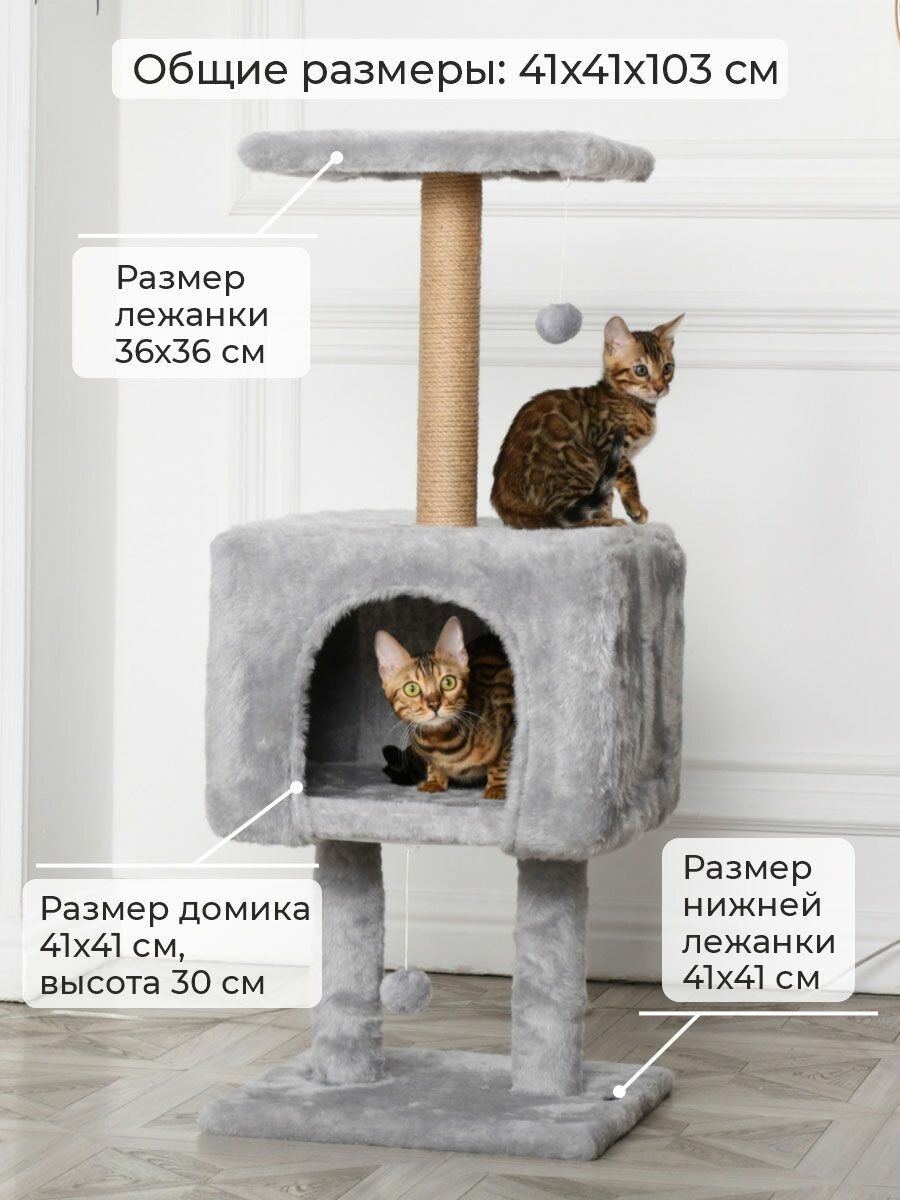 Когтеточка для кошек с домиком бриси, 41х41х103 см