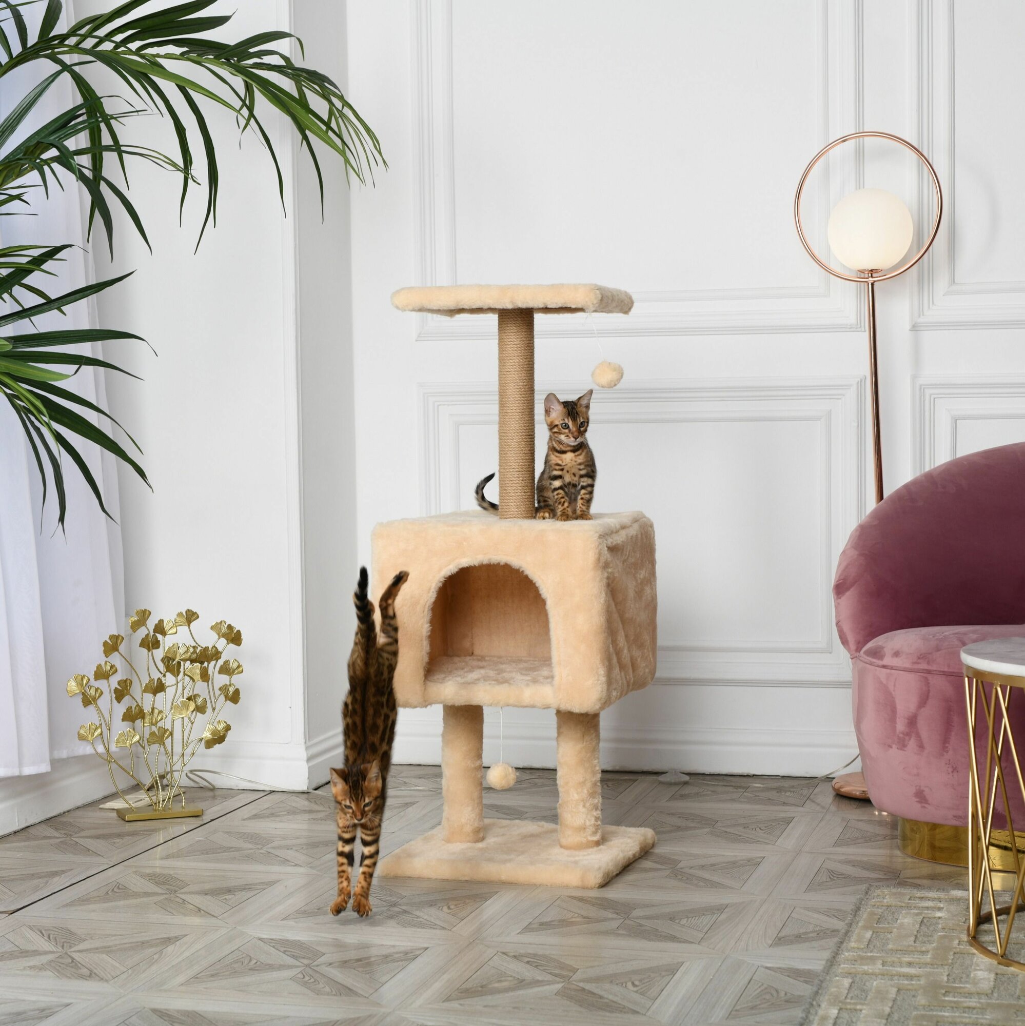 СохранитьКогтеточка для кошек с домиком "БРИСИ" на ножках, бежевая, 41х41х103 см интересное:
