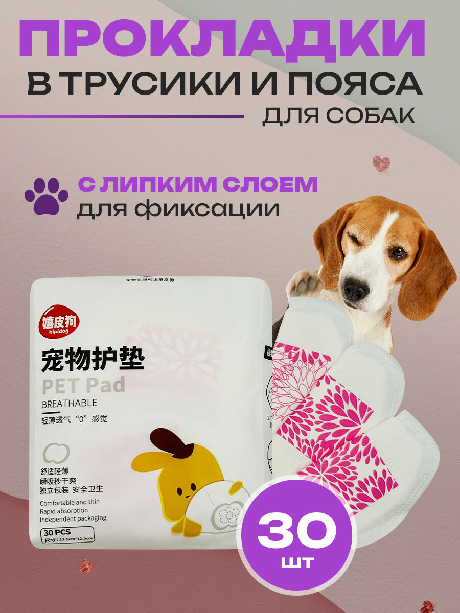 Прокладки для собак гигиенические в трусы во время течки Big Tiny, памперсы или подгузники для собак и кошек, 30 шт интересное: