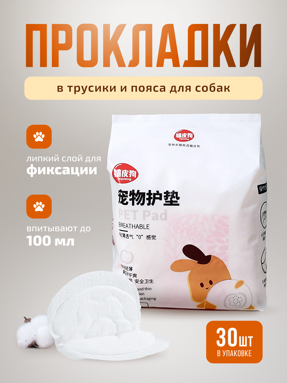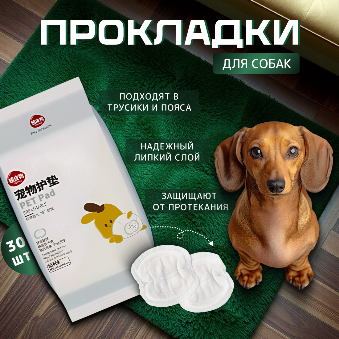 | Дополнительная информация | Быстро впитывается и не вытекает наружу ; легко прикрепить к поверхности трусов . Применяются в период течки у собак и при недержания мочи у домашних питомцев. |