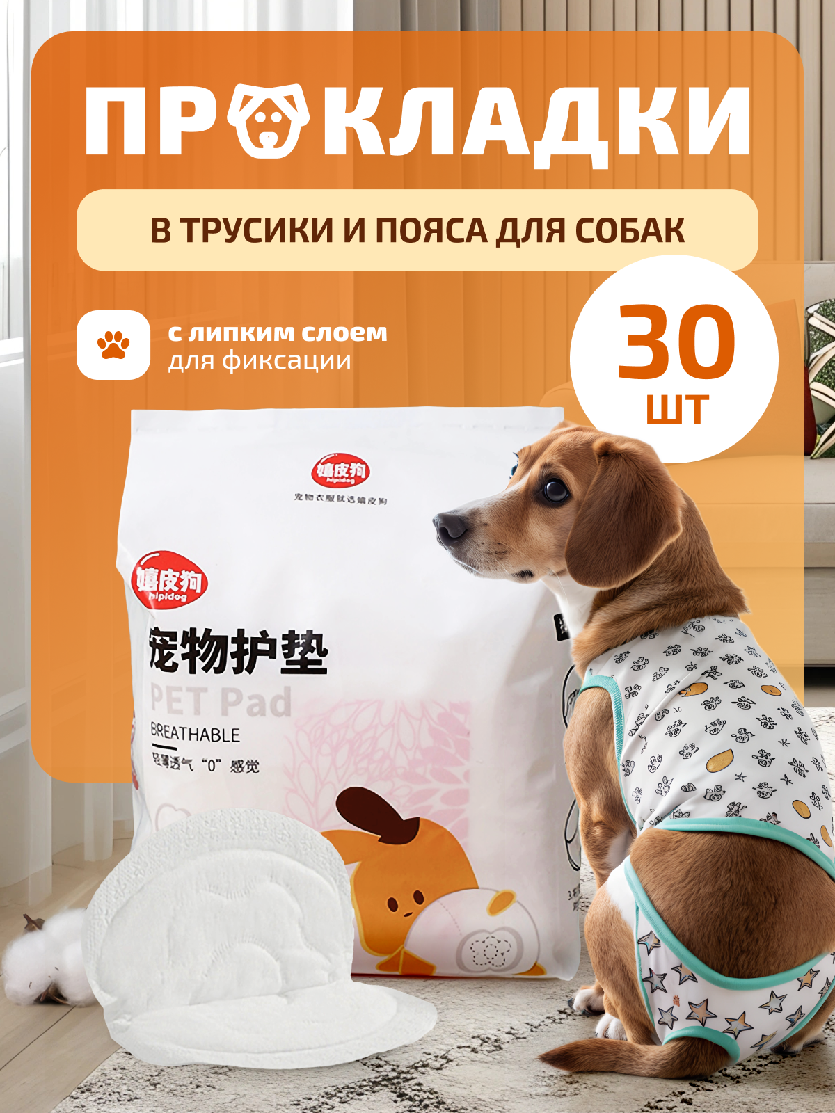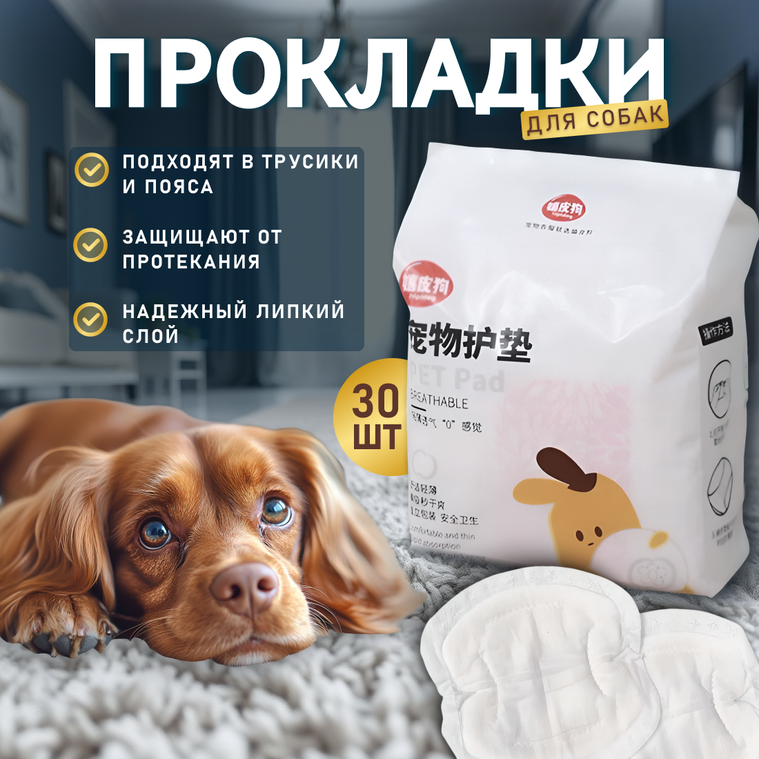 Прокладки для собак гигиенические в трусы во время течки, вкладыш в пояс, памперсы или подгузники для собак