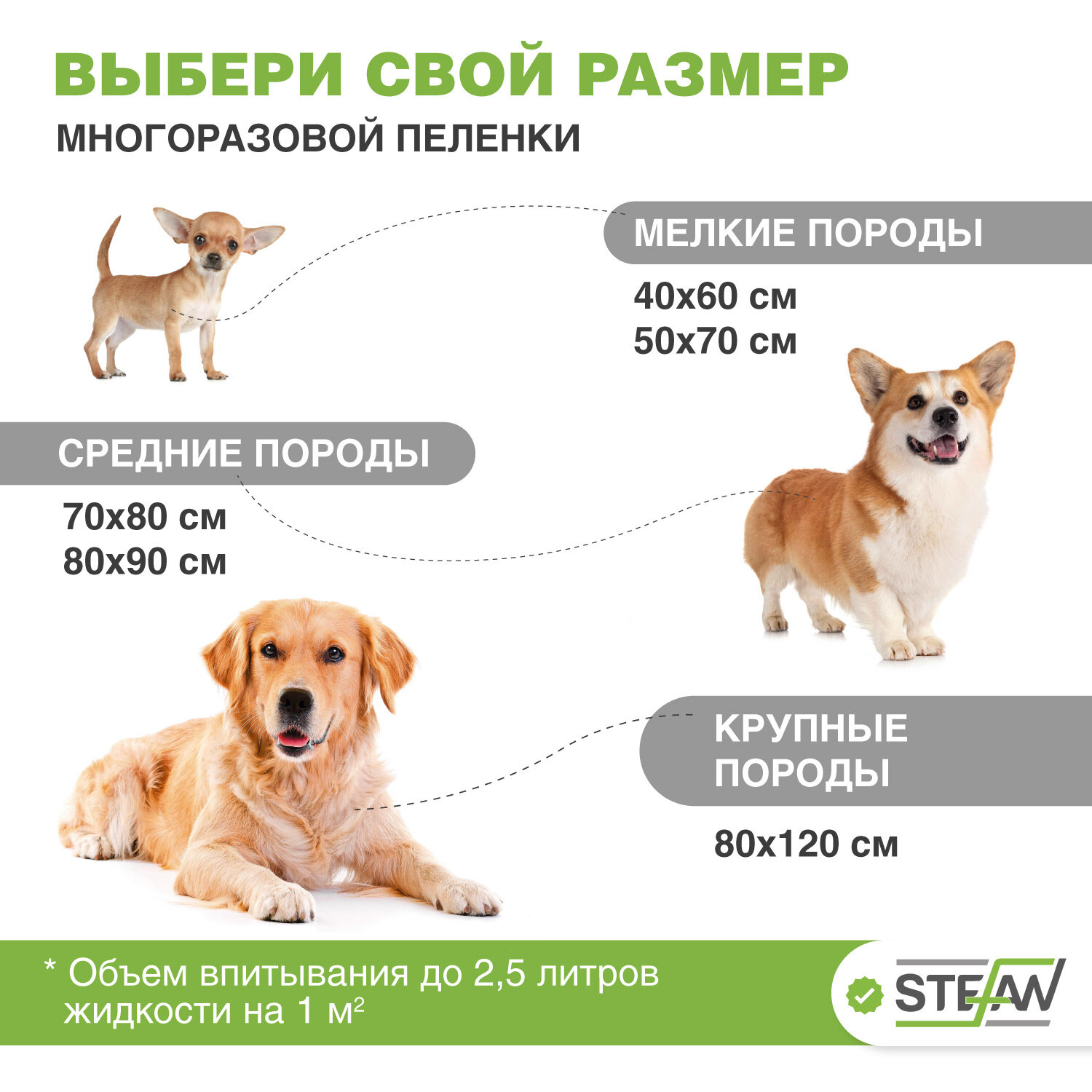 Пелёнка STEFAN (Штефан), ПРЕМИУМ, впитывающая для собак, многоразовая для животных, серая 80х120см, WP-801201