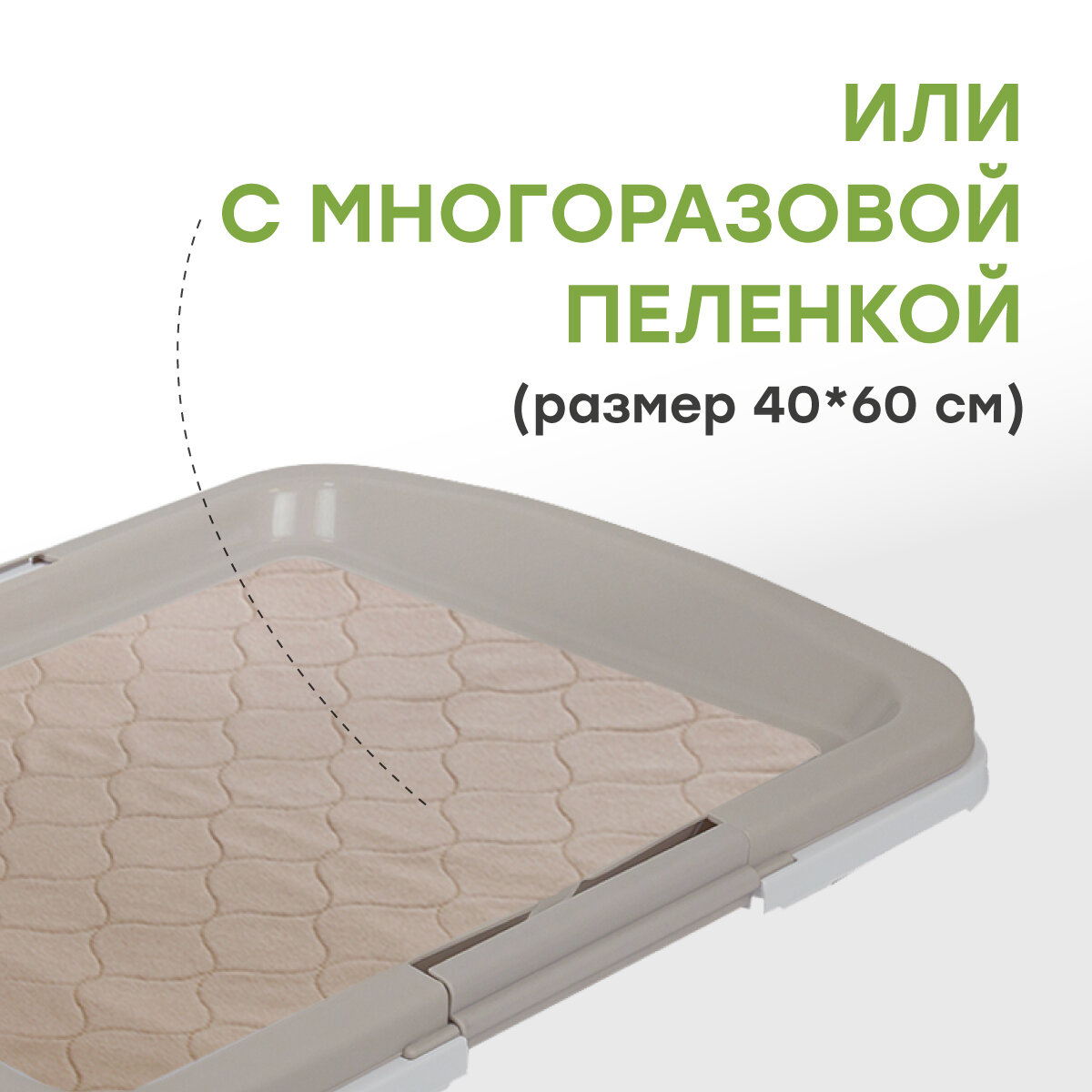Большой туалет-лоток для собак мелких и средних пород STEFAN (Штефан) под одноразовую пеленку (L) размер 63x48x6 серый, BP1031B