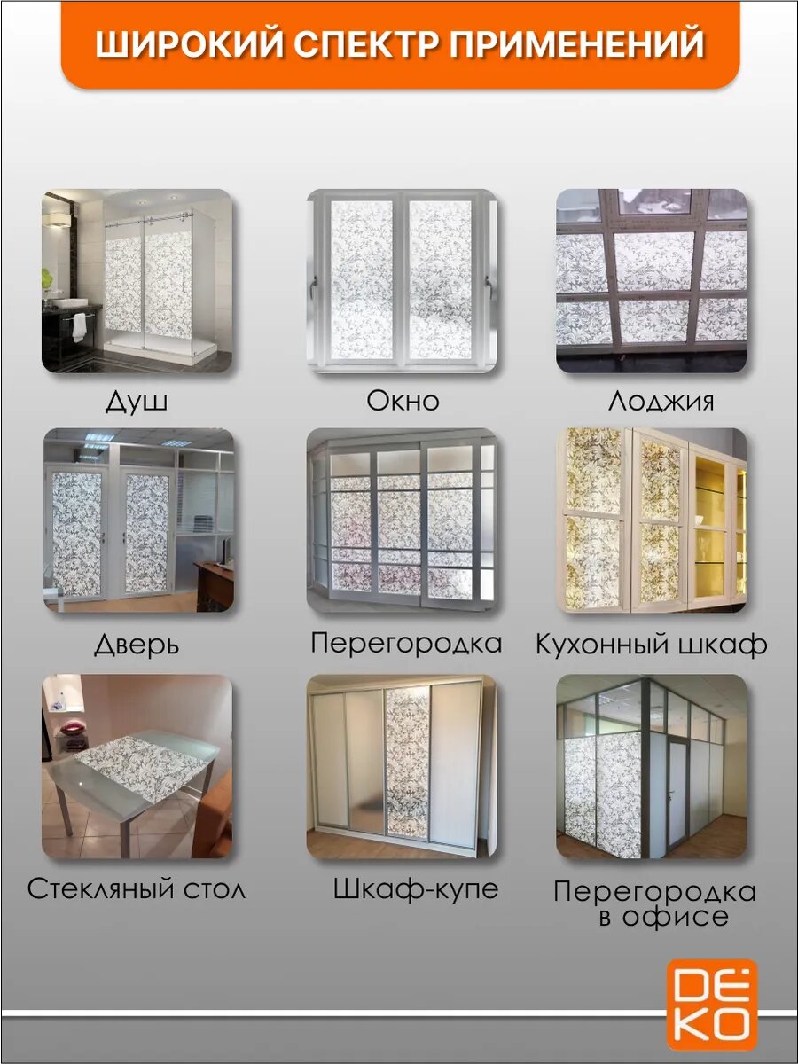 Витражная матовая защита от солнца на стекло, интерьерная декоративная, самоклеющаяся пленка на окно, на дверь DecoMir