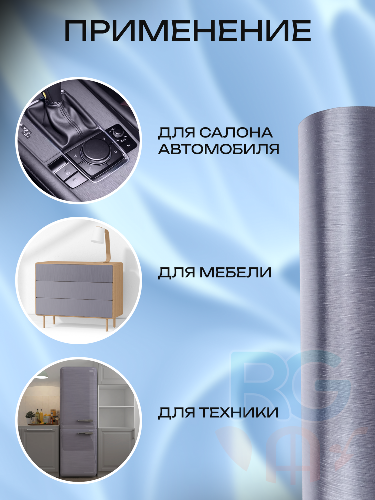 СохранитьПленка защитная для автомобиля. Пленка шлифованный алюминий самоклеящаяся для авто 152х30см. Цвет: серый интересное:
