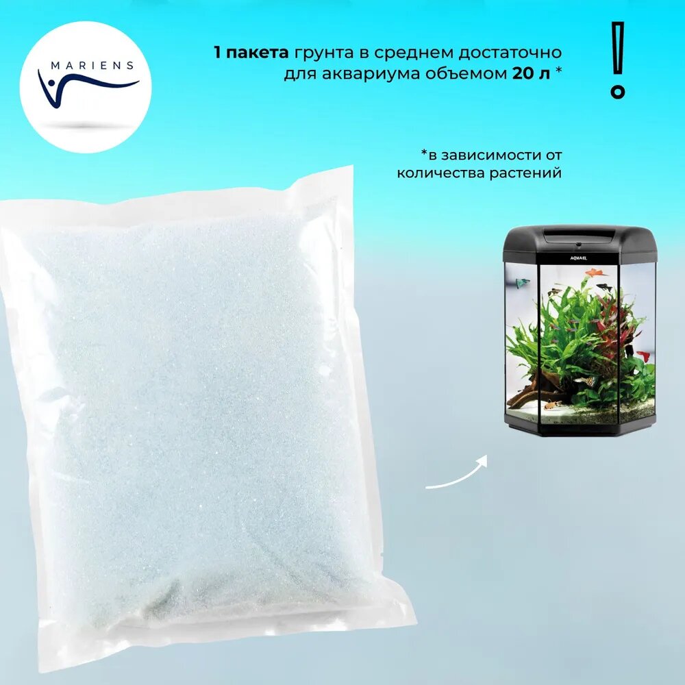 Натуральный грунт MARIENS "Сейшельский песок" мерцающий молочный, 2,5 кг, размер фракции: 0,1-0,2 мм, грунт для аквариума, природный