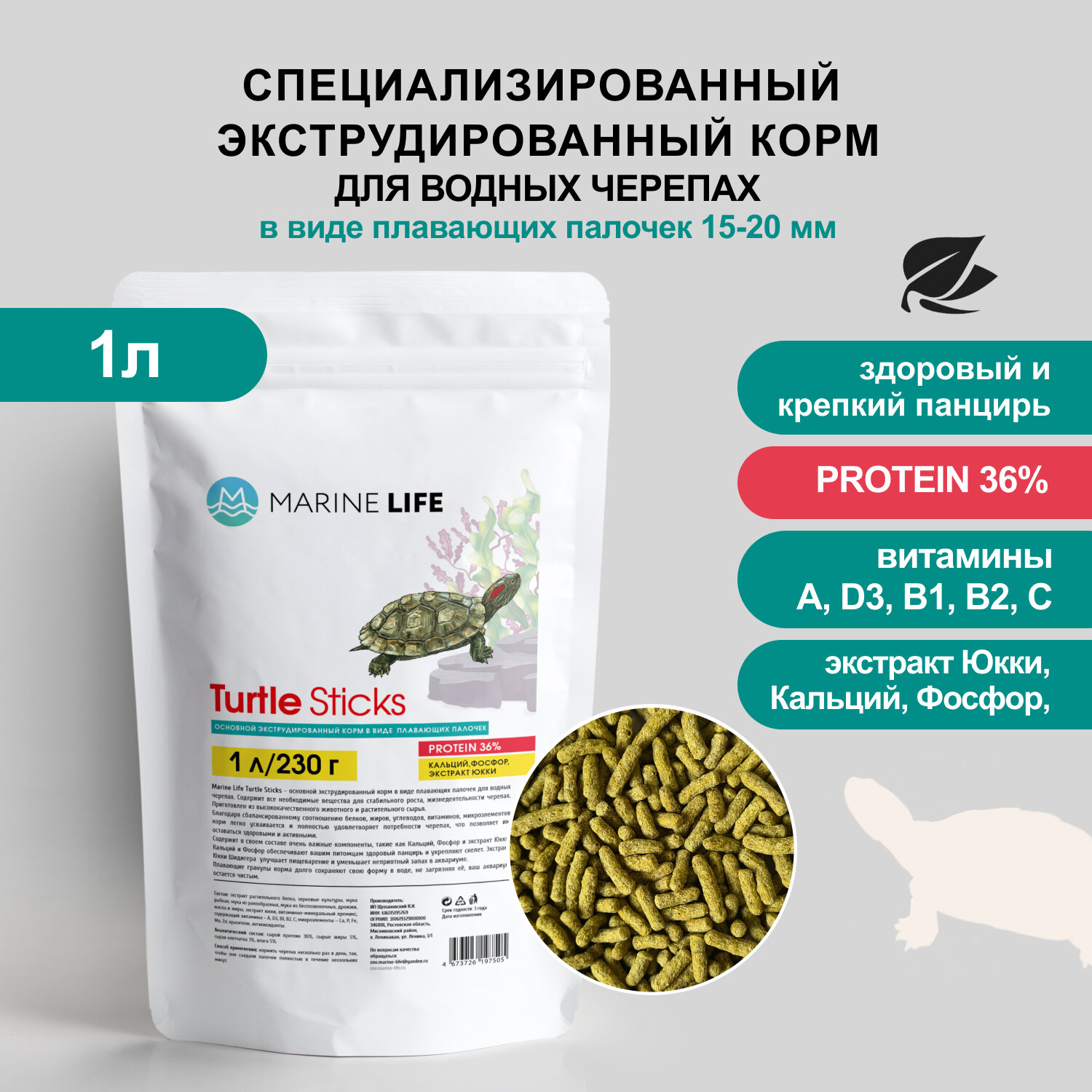 Корм Marine Life "Turtle Sticks", для черепах, сухой, палочки, 2,3кг, упаковка 10 л