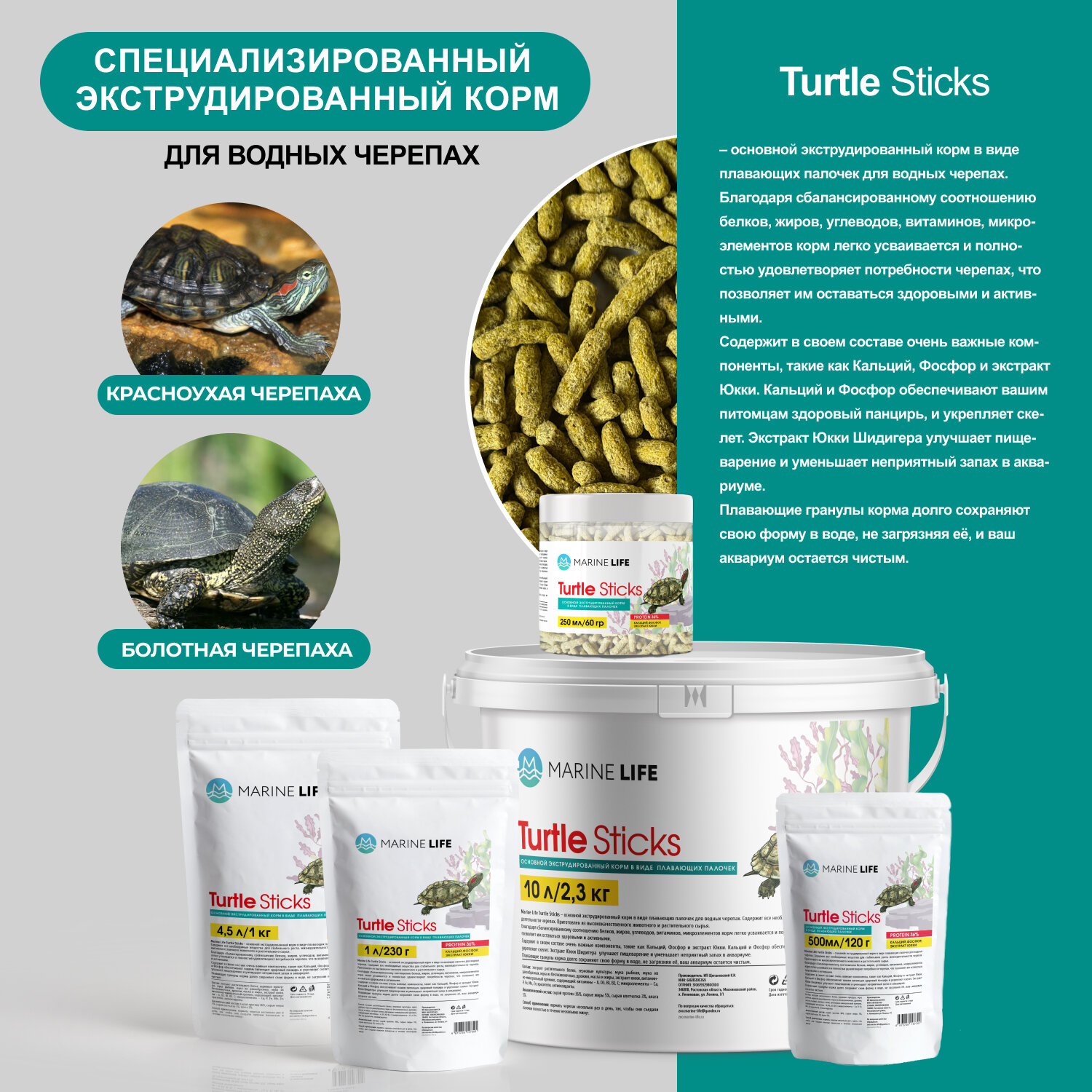 Корм Marine Life "Turtle Sticks", для черепах, сухой, палочки, 2,3кг, упаковка 10 л