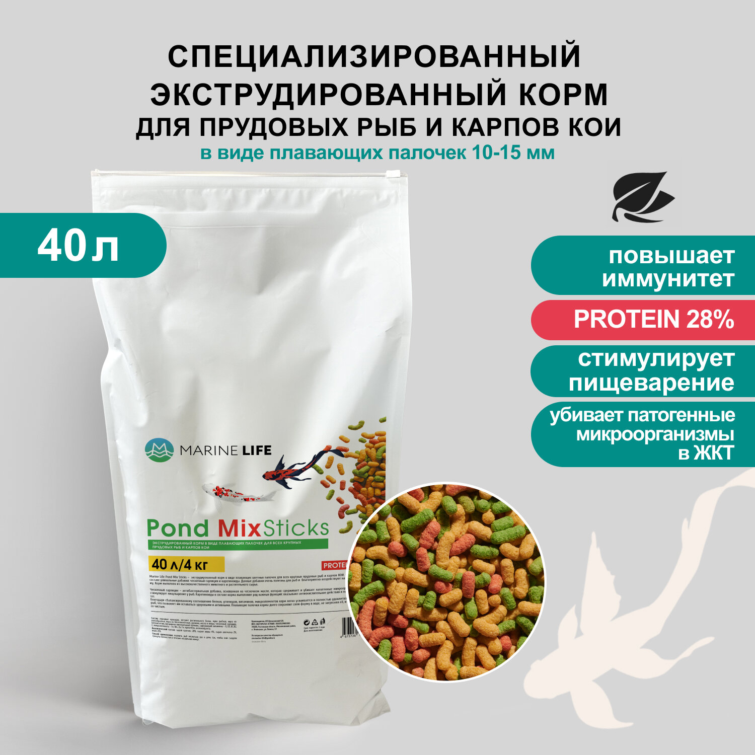 Купить Корм Marine Life Pond MIX, для прудовых рыб, карпов, КОИ, плавающие палочки, 4 кг