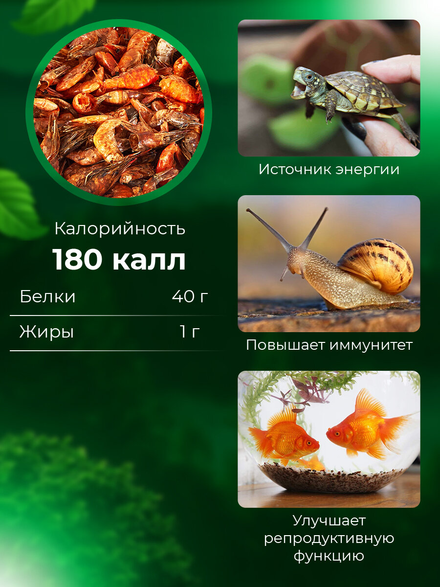 Корм для животных Big Tiny, креветки сушеные, корм для черепах, аквариумных рыб, крыс, ящериц. 90г, 500мл интересное: