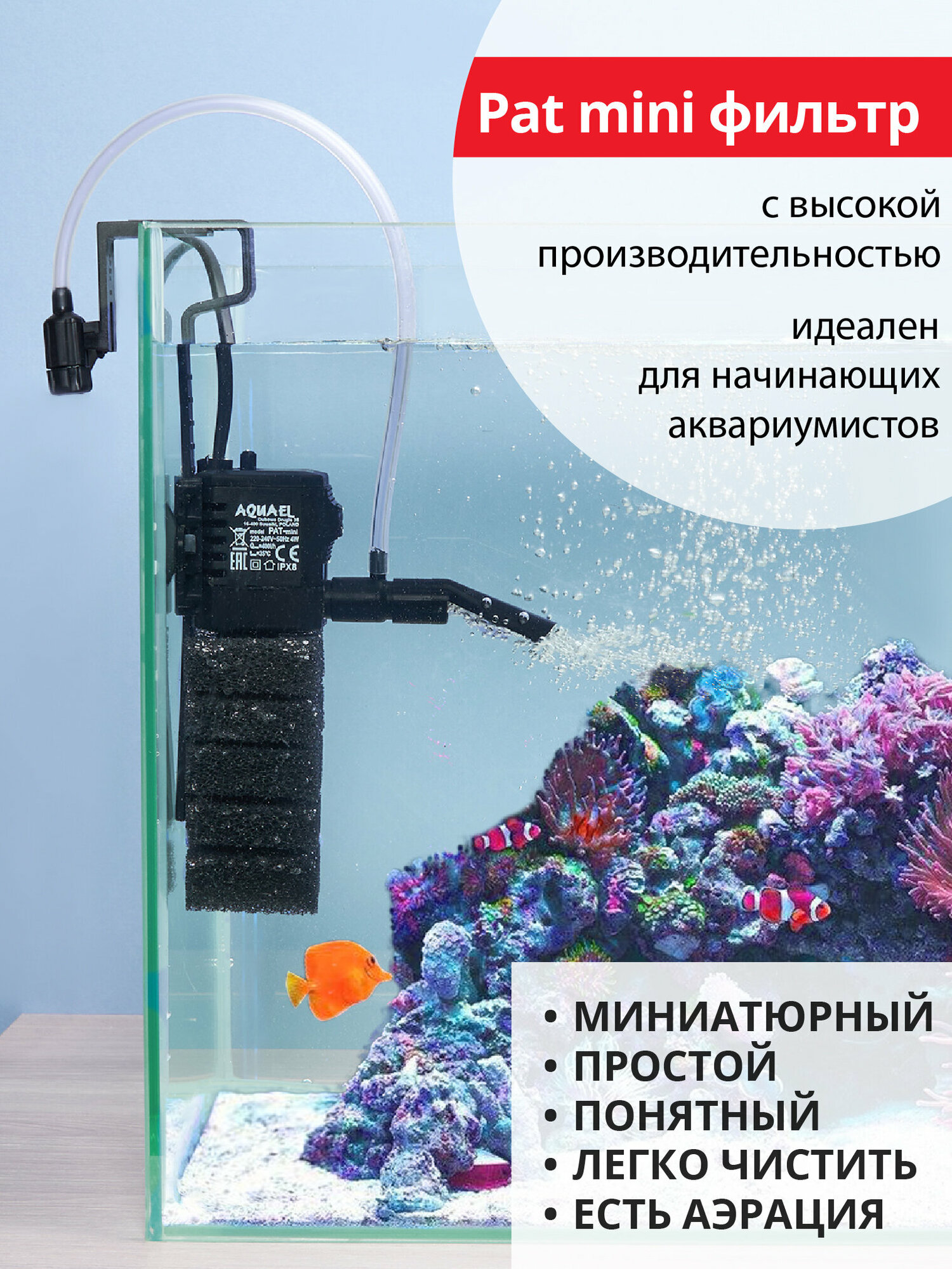 Фильтр - помпа для аквариума AQUAEL PAT FILTER MINI ( до 120 л, 450 л/ч, 4.5 Вт ) внутренний, погружной, для рыб и черепах интересное: