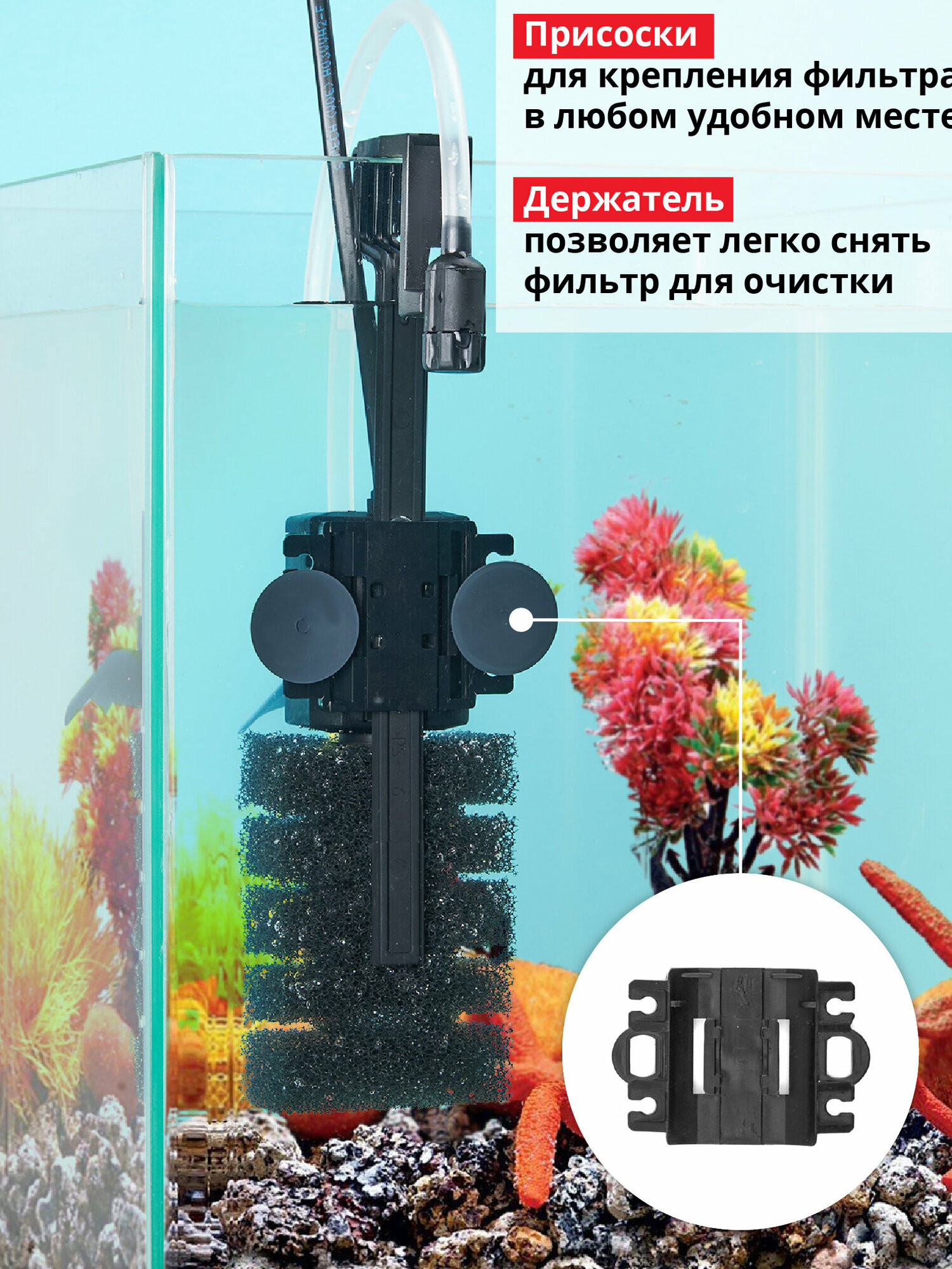 | Подробная комплектация | губка крупнопористая; комплект насадок для фильтра: аэрационная силиконовая трубка, кронштейн с креплением для регулятора аэрации, насадка "держатель" с присосками Ø 24 мм (2 шт.), насадка "направляющий наконечник" mini, насадка "регулятор аэрации", насадка для аэрации mini, трубка перфорированная; инструкция с гарантийным талоном |