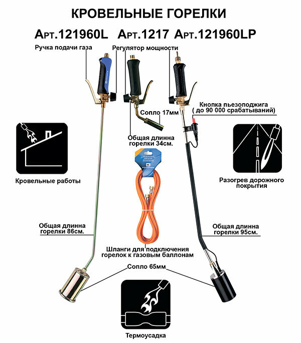Горелка газовая кровельная KEMPER длина 860 мм сопло D60 мм арт 121960L интересное: