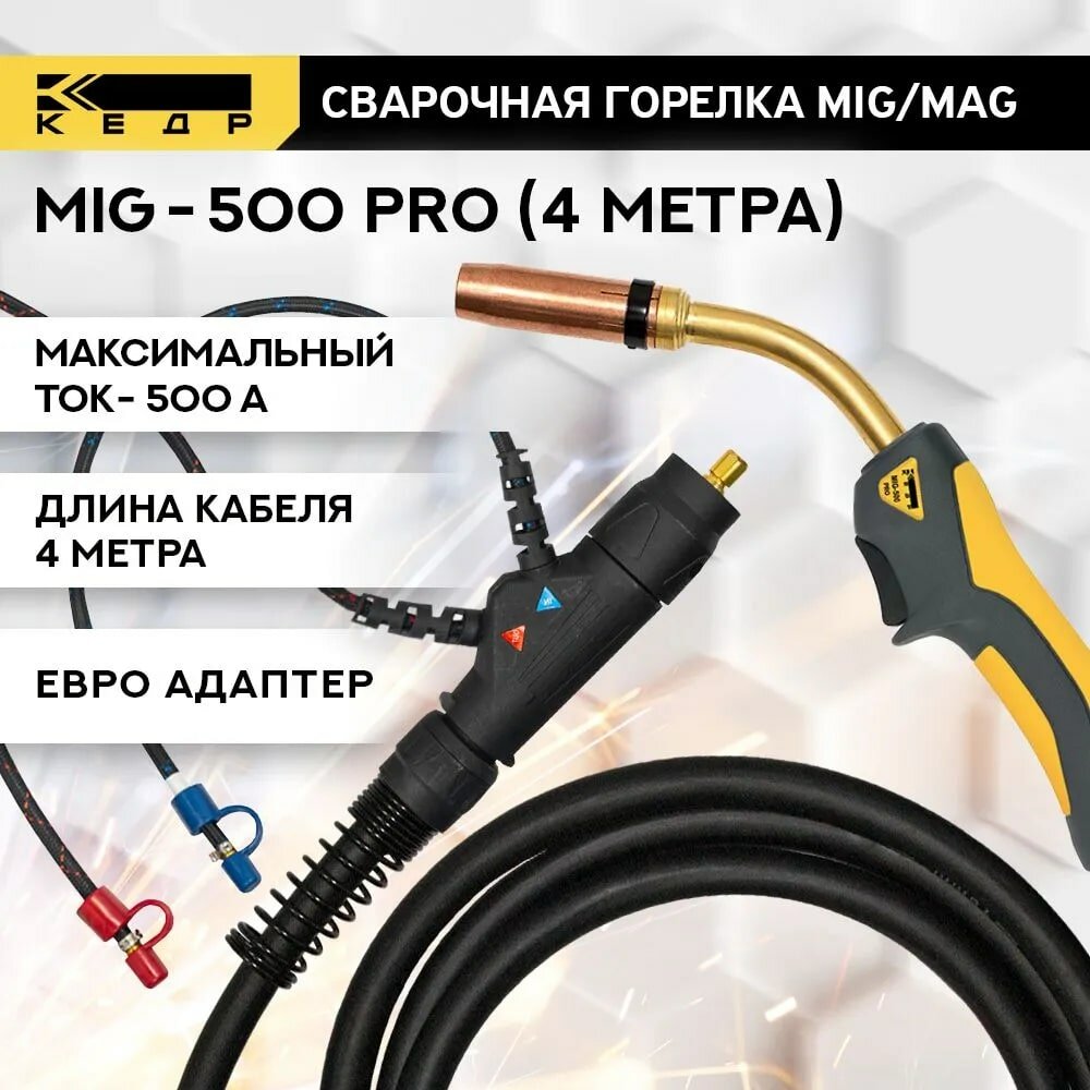 Горелка сварочная для полуавтомата MIG MAG кедр MIG-500 PRO (евро адаптер) жидкостного охлаждения 4м 7150018 интересное: