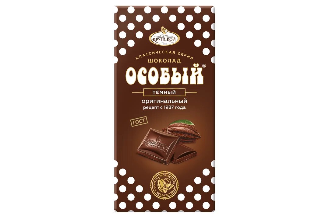 Шоколад КФ им. Н. К. Крупской "Особый", темный, без начинки, 85г, 5шт интересное: