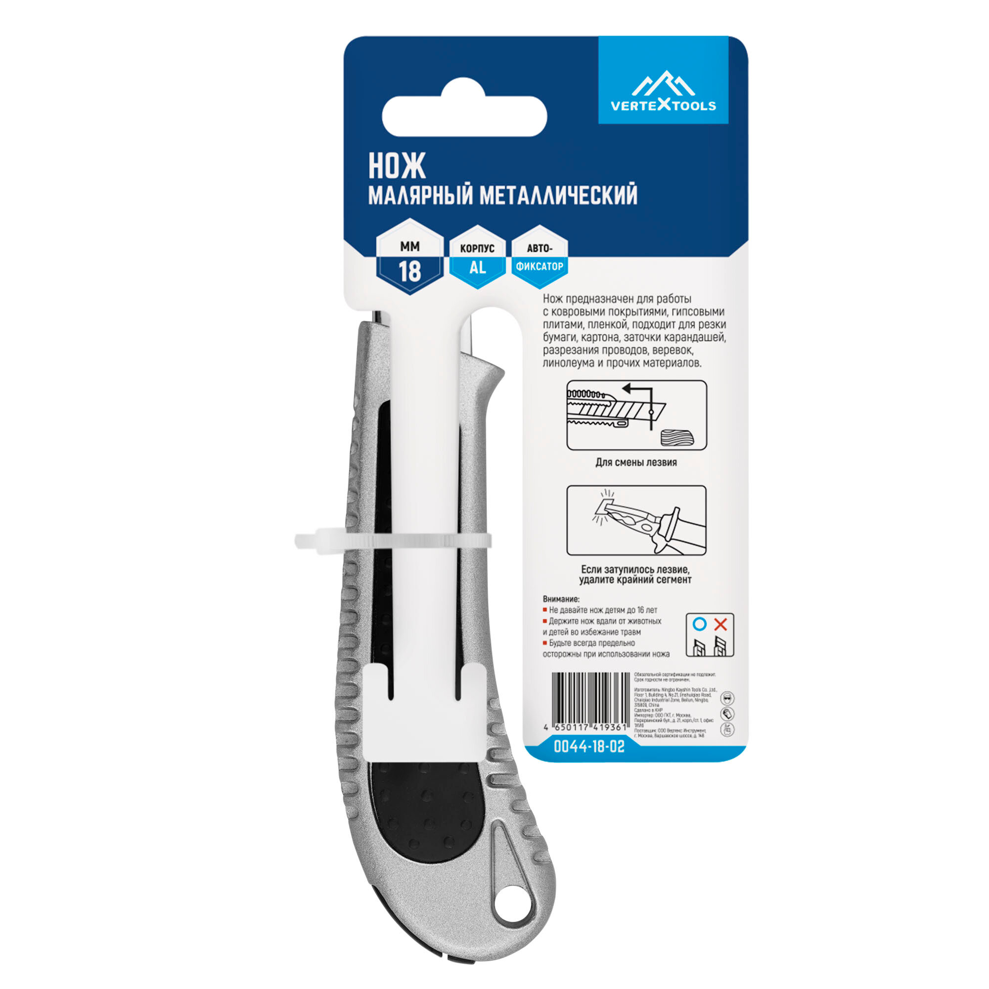 Нож строительный монтажный VertexTools усиленный металлический 18 мм. интересное: