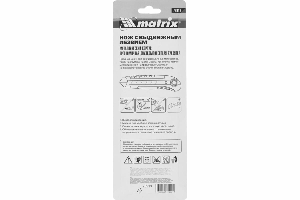 СохранитьНож Matrix 25 мм, выдвиж. лезвие, метал. направляющая, двухкомп. корпус, винт. фиксатор, с магнитом 78913 интересное:
