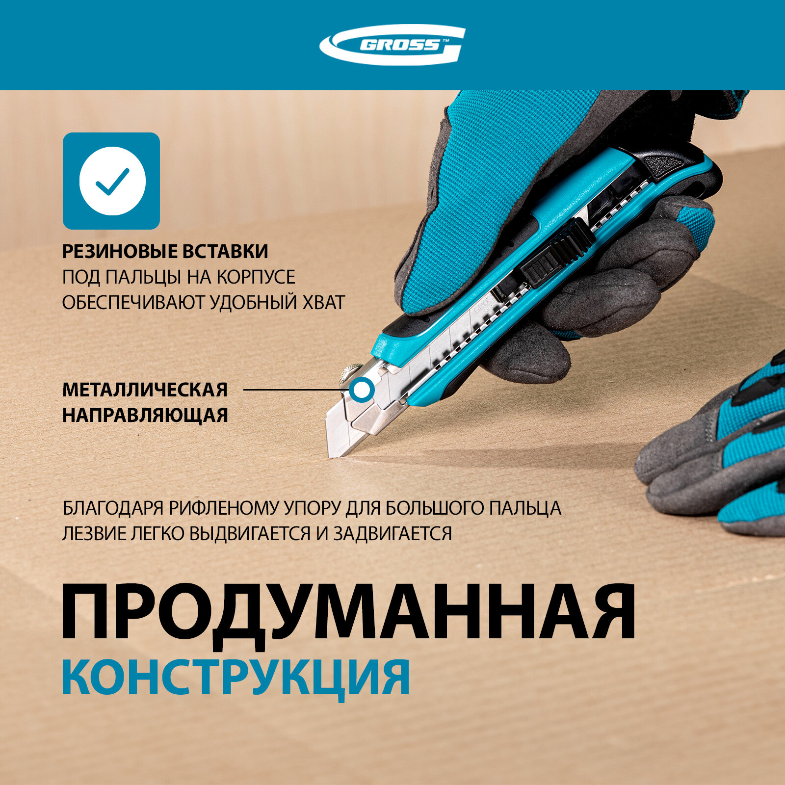 Купить Нож Gross 170 мм обрезин. ABS - корпус, выдв. сегм. лезвие 18 мм (SK-5), метал. напр-щая, 5 лезвий 78893