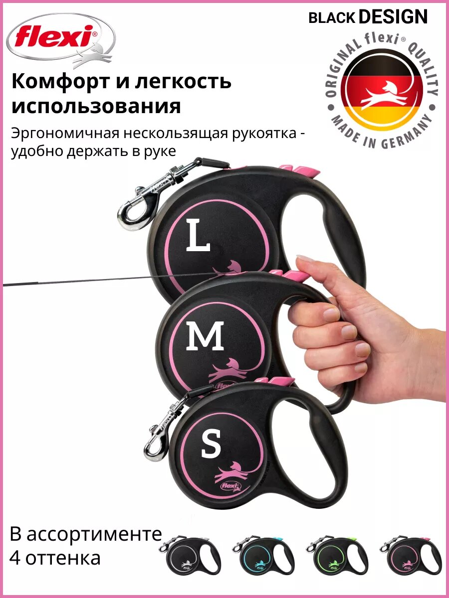 FLEXI BLACK DESIGN TAPE ременной поводок рулетка для животных 5 м размер S розовый (1 шт)