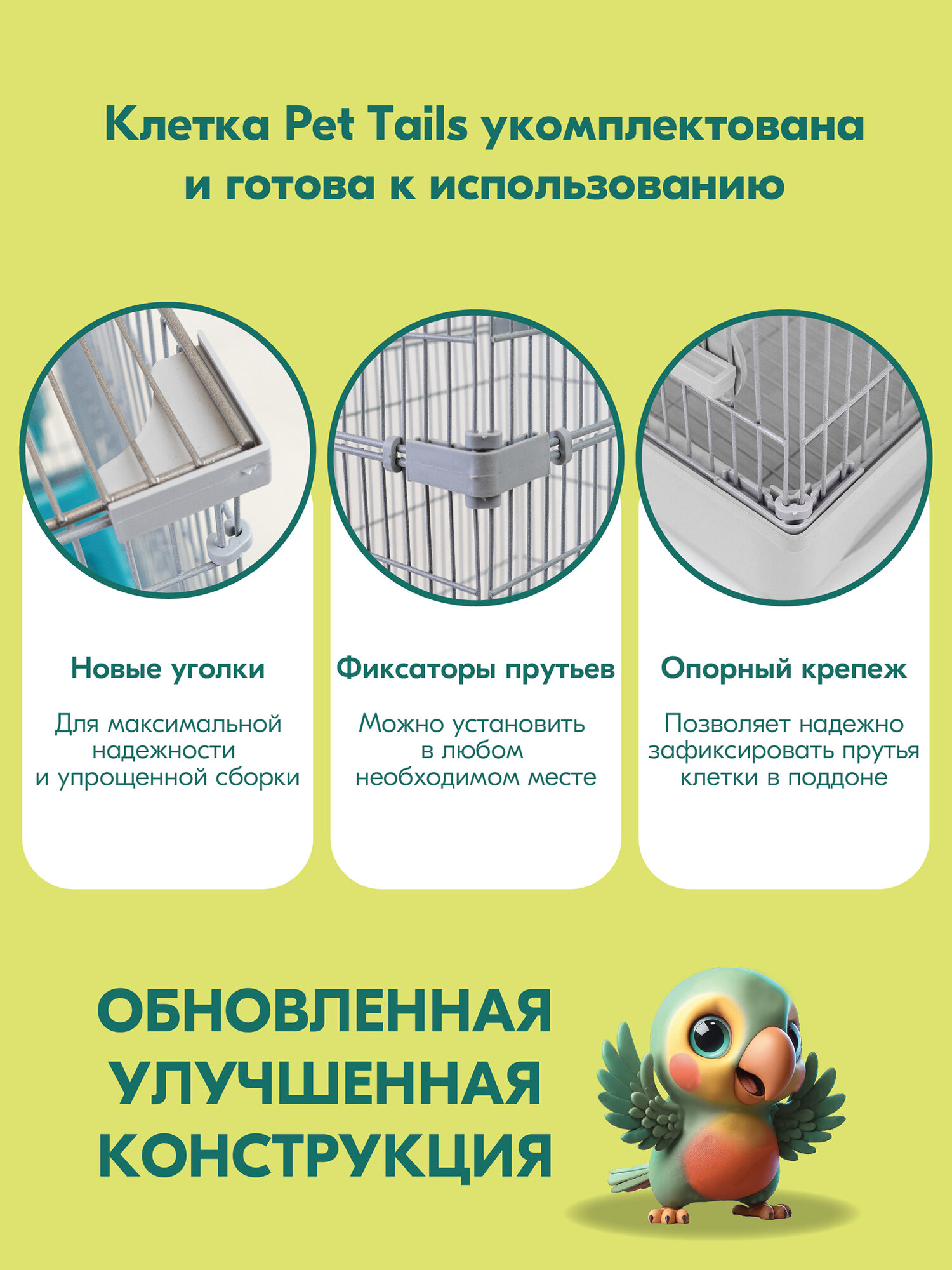 Клетка для птиц разборная "PetTails", шаг прута до 11мм, 42*30*h37см, бирюзовая