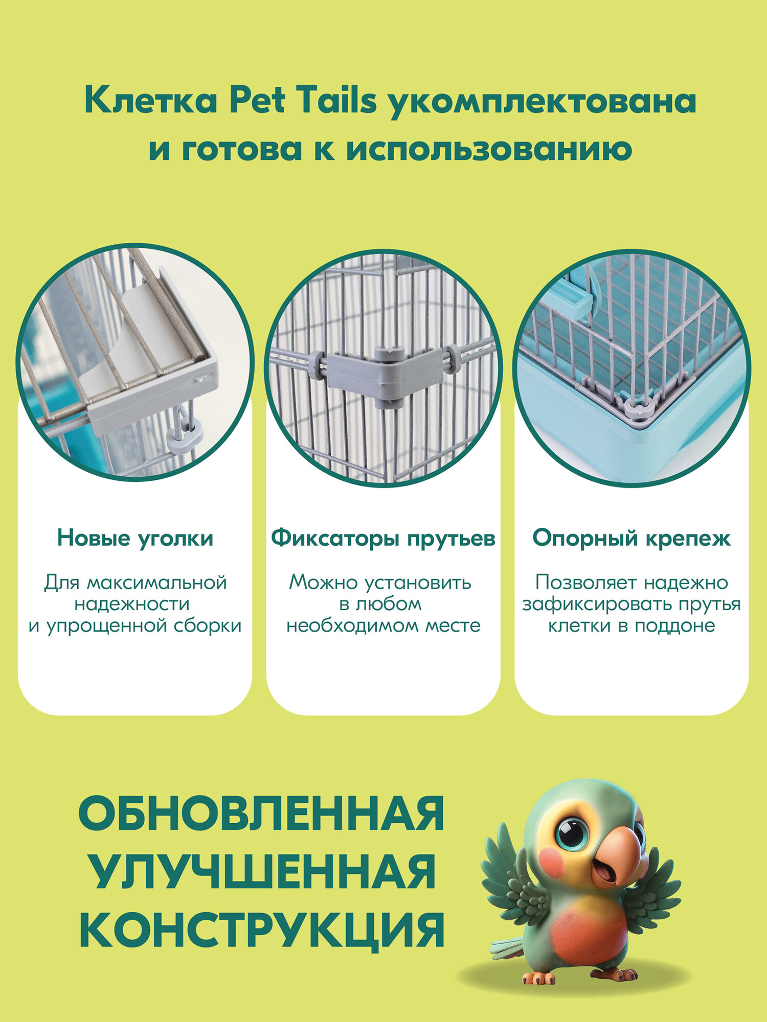 Купить Клетка для птиц разборная "PetTails", шаг прута до 11мм, 42*30*h37см, бирюзовая