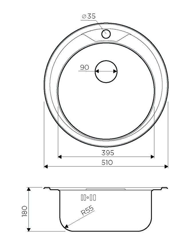 Кухонная мойка Omoikiri Asida 51-IN, круглая, нержавеющая сталь 4993785